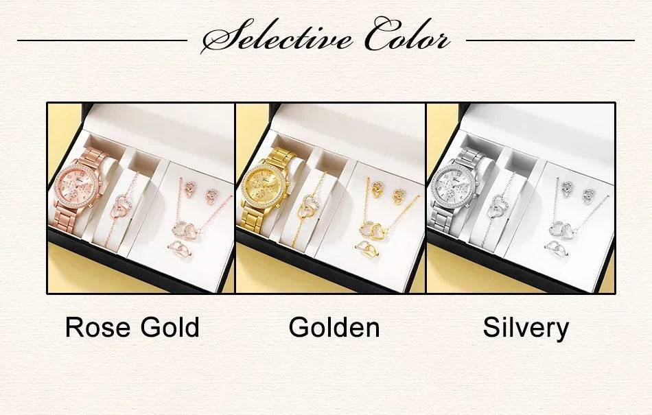 �Versatile fashion accessory set :This 6-piece set includes a watch. ring. necklace. and earrings. making it a versatile fashion accessory set that can be mixed and matched to suit any occasion.