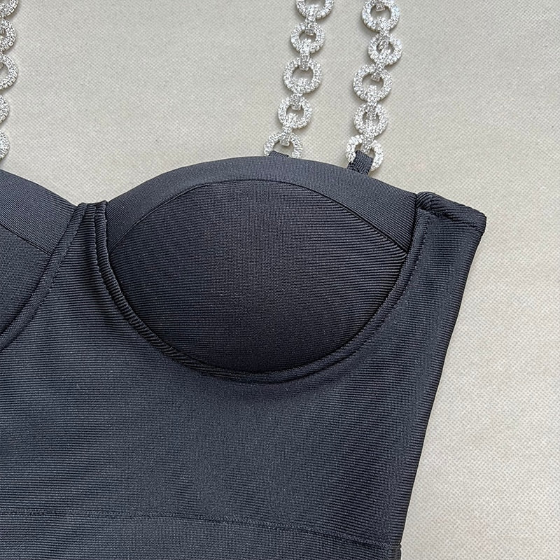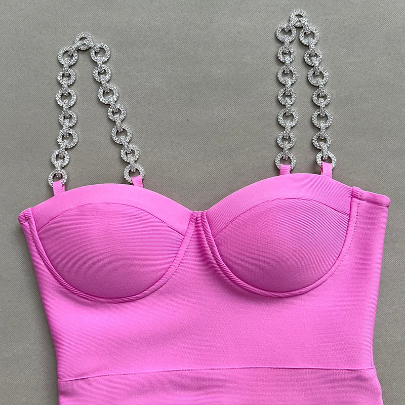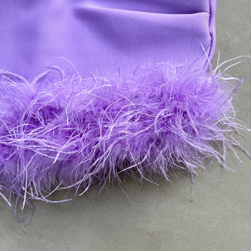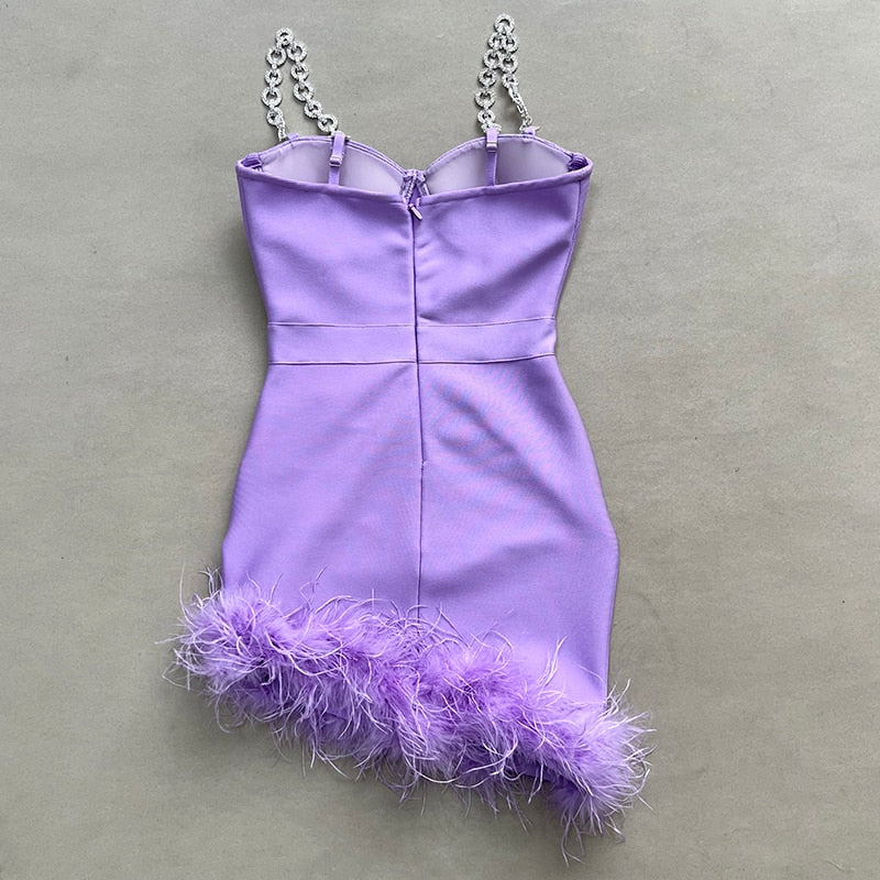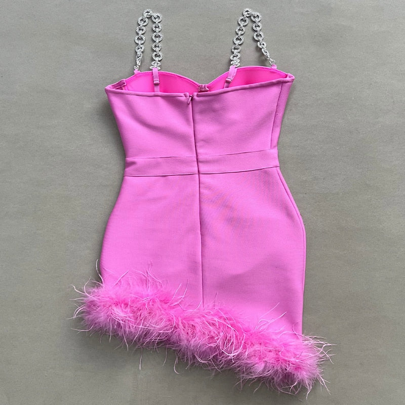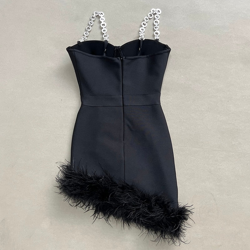 This Rhinestone Feather Bandage Dress is perfect for making a glamorous statement. Made of luxe stretchy bandage fabric and featuring a dazzling rhinestone feather design. this dress is sure to turn heads.
