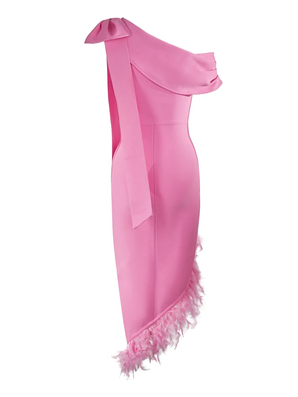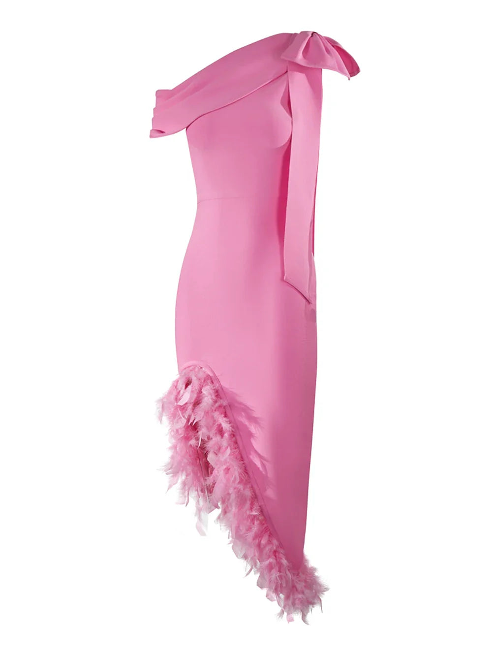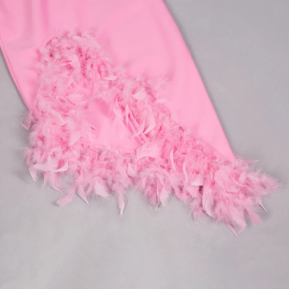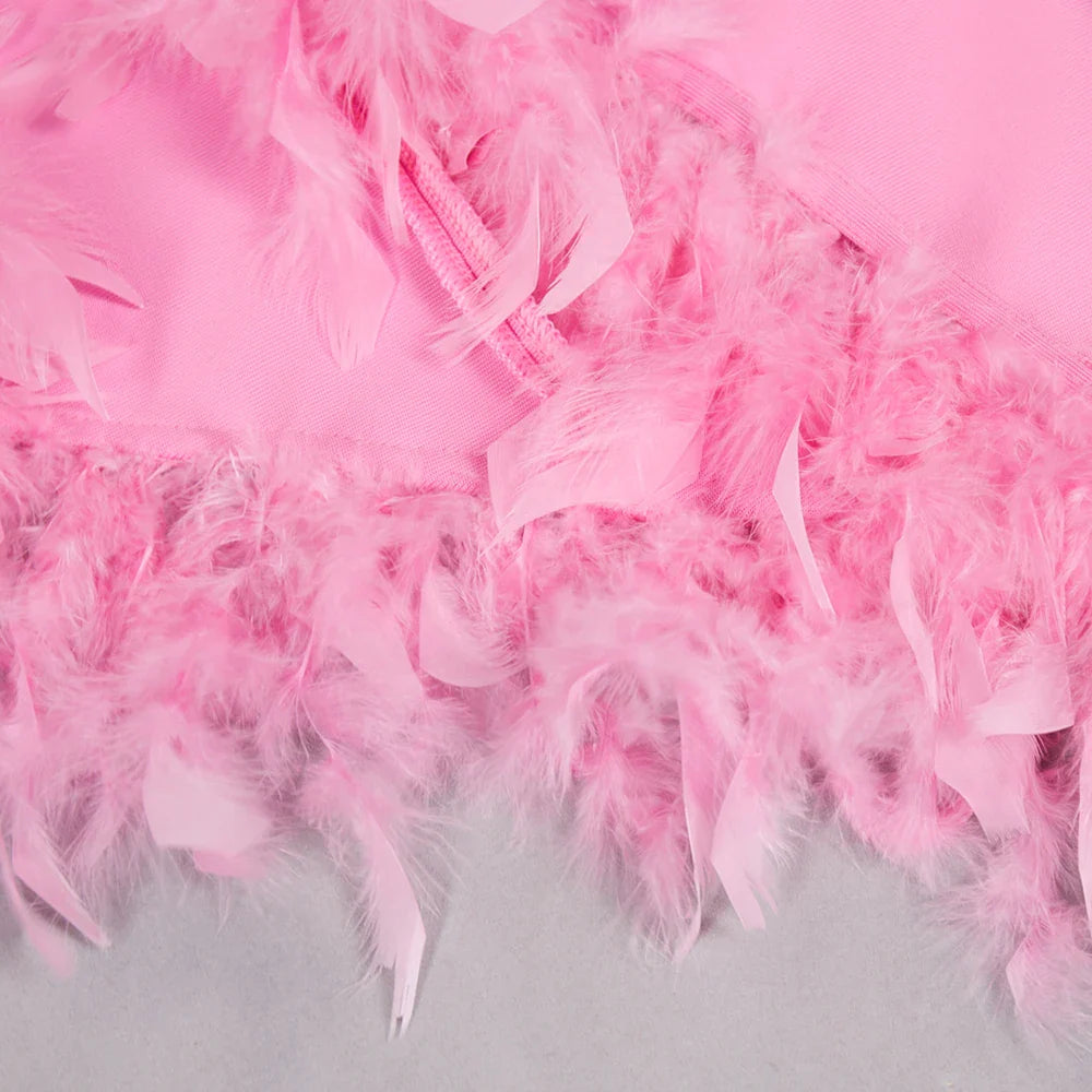 Dress to impress in our Sleek Feather Midi Dress! Made with high-quality bandage material. this classy dress is a must-have for any stylish woman. Its sleek design and feather detailing will make you stand out at any event. Elevate your wardrobe with this must-have dress!