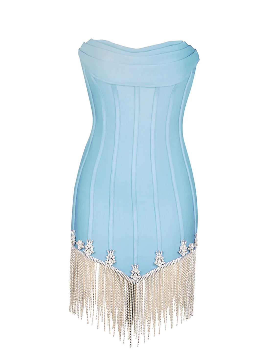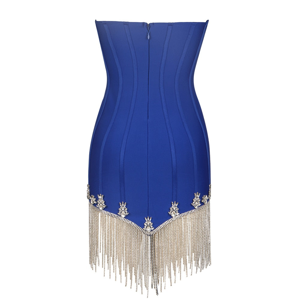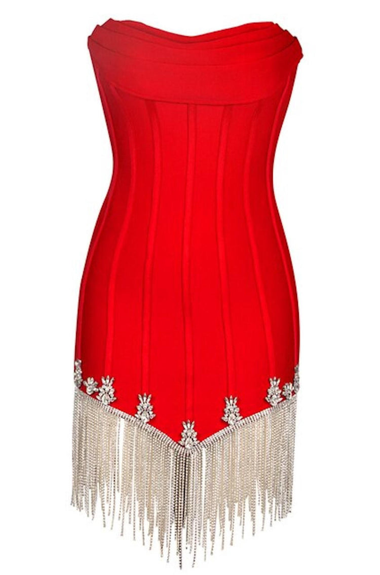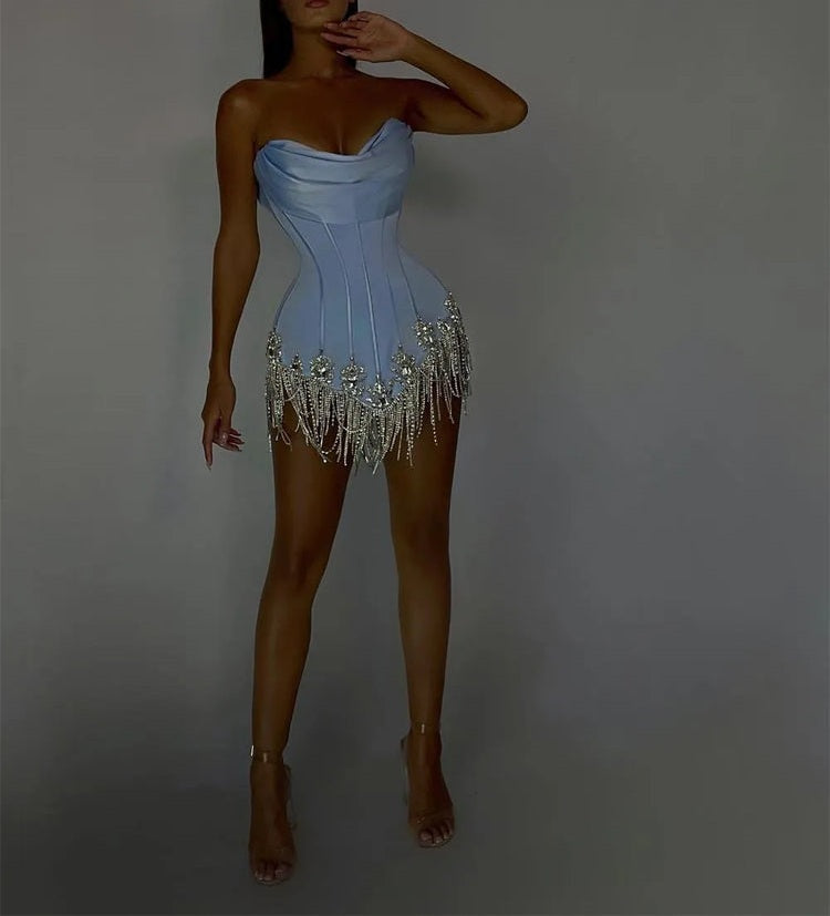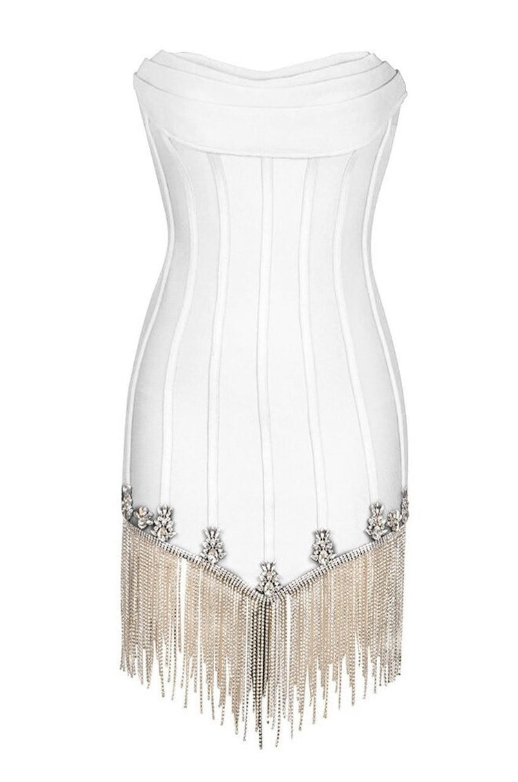 The Abigail Embellishment Bandage Mini Dress is the perfect dress for any special occasion. This luxurious dress features elegant detailing that speaks to an expensive taste. Its timeless design makes it perfect for birthdays. weddings or any other special event.