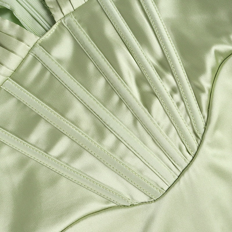 This Satin Corset Dress Midi Ruched Style Sleeveless dress speaks for itself. Show your curves and figure at every turn.