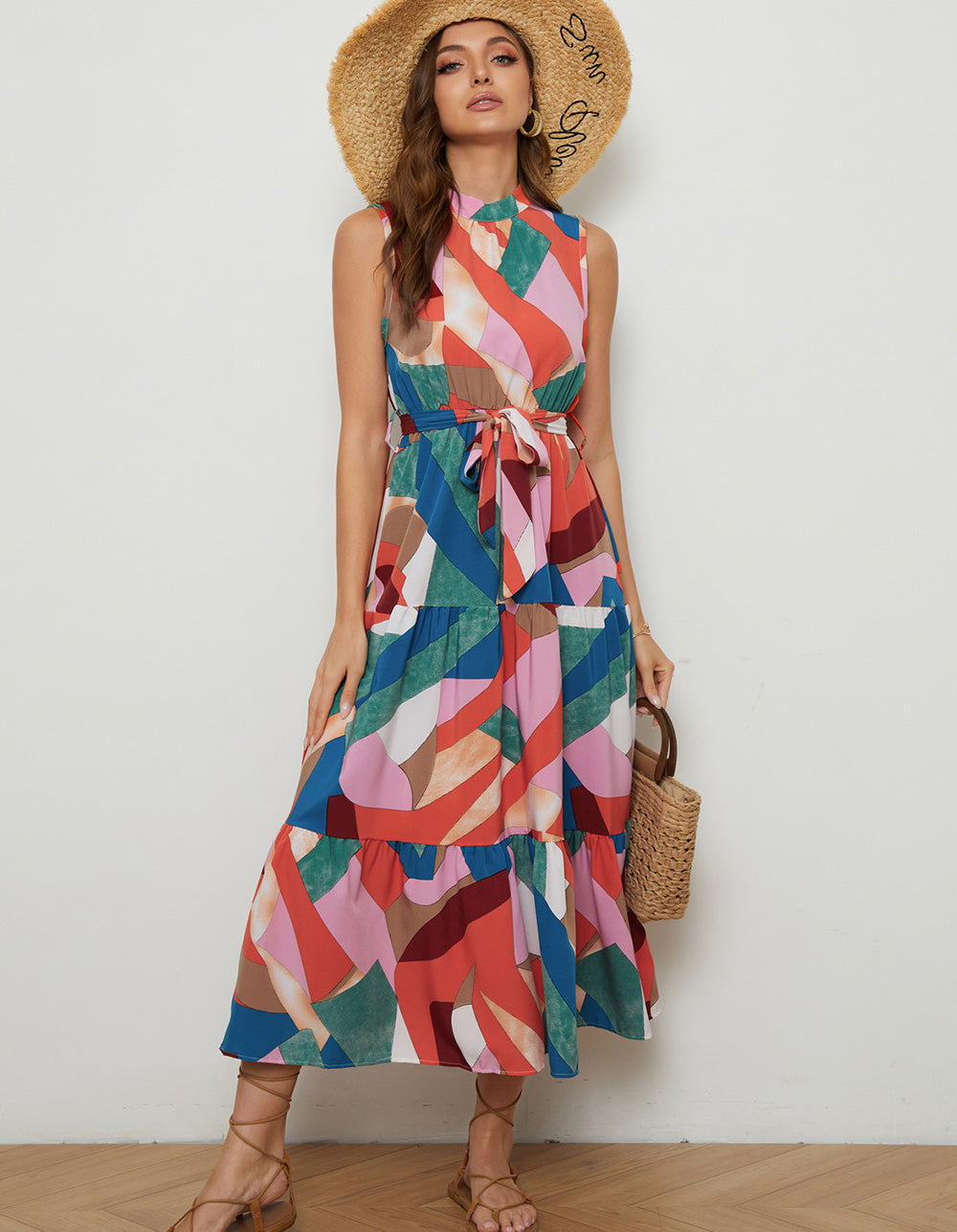 This sleeveless A-line dress is made from 100% Polyester for superior comfort and durability. The all-over print pattern. round neck. and belted waist give this dress a stylish. yet casual look. The long pencil hemline ensures a flattering fit that looks great for any event.