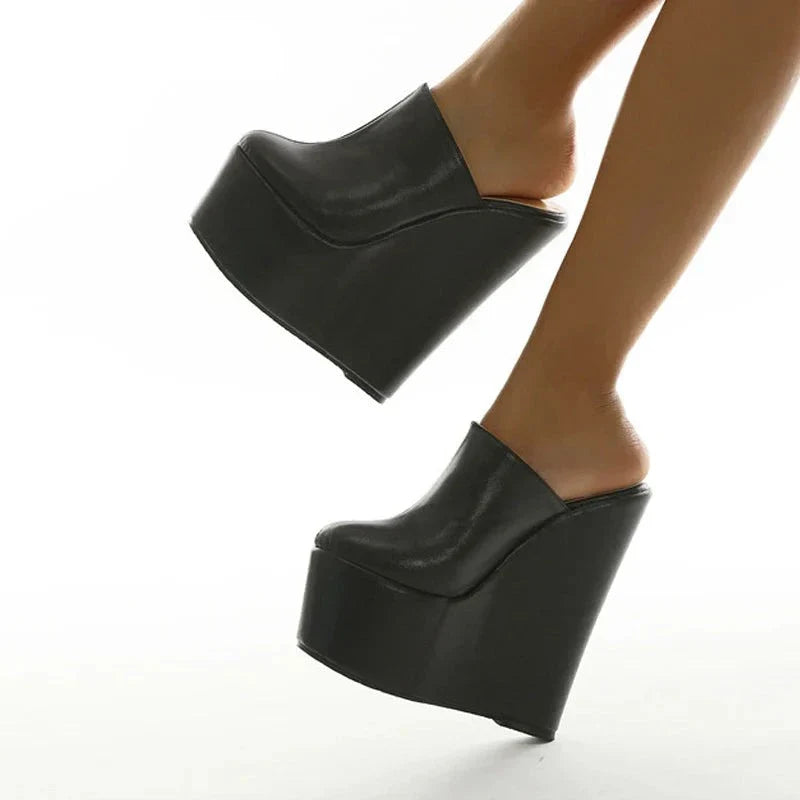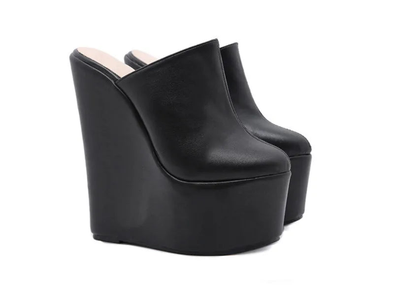 Take your wardrobe to new heights with these Always Confident Extreme Wedge Heels. Featuring a black PU material with a closed toe design and an extreme platform height. we're obsessed.