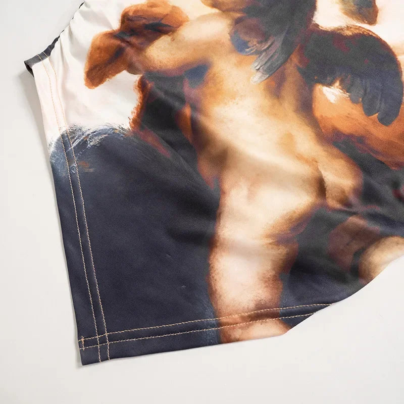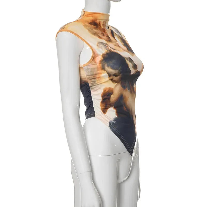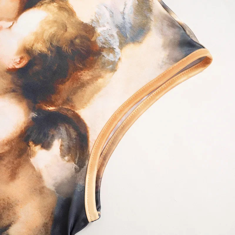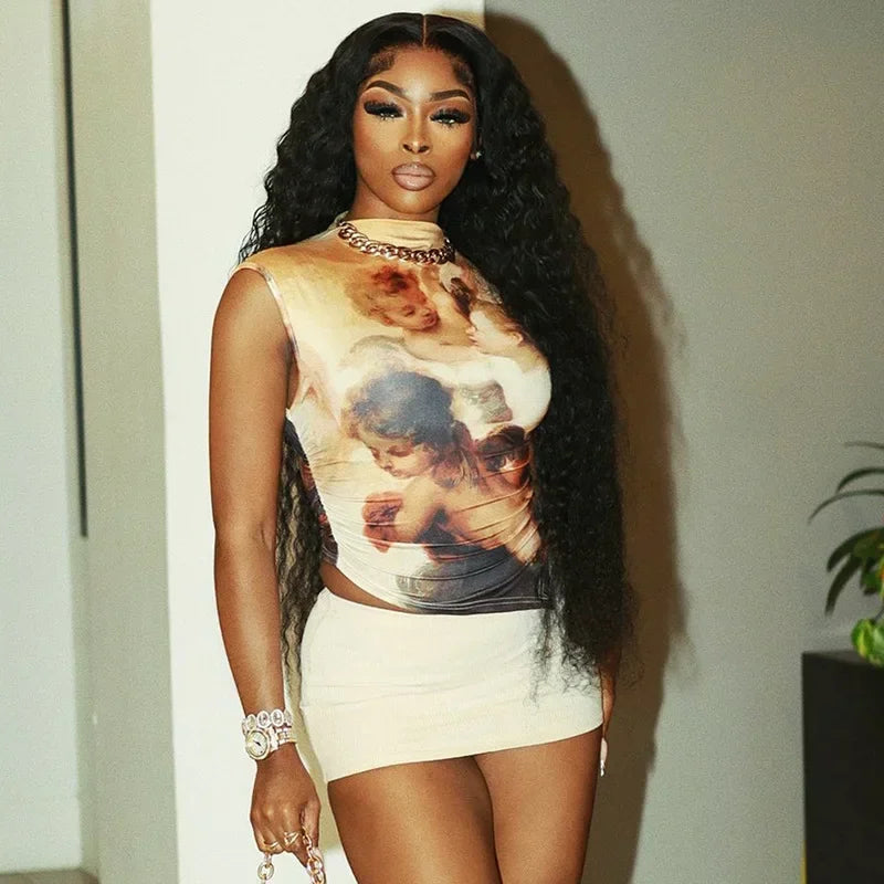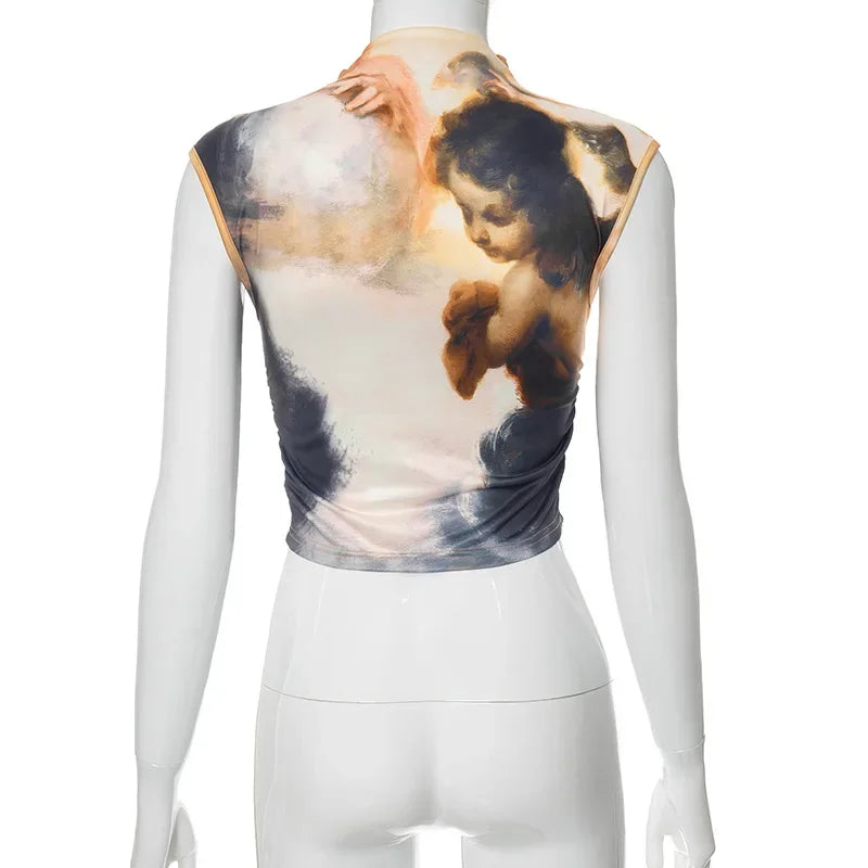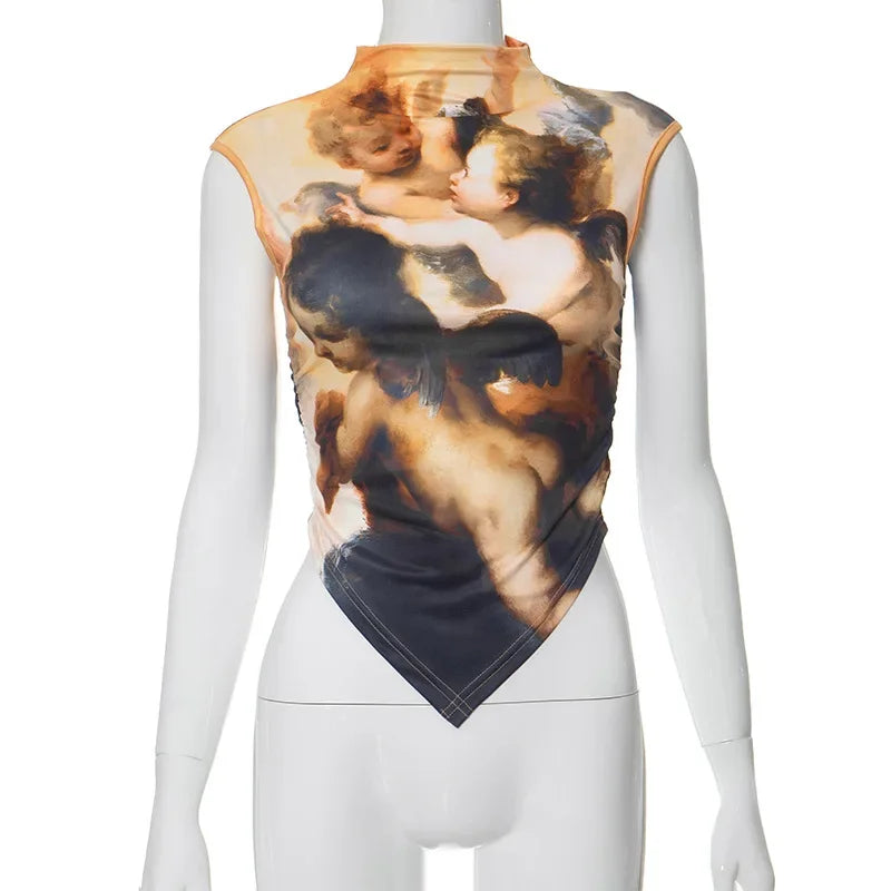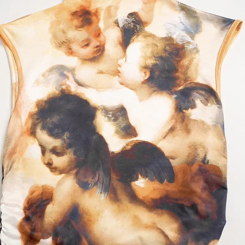 When the weekend calls so does this Angel Baby Top. Brought to you in a beige hue cotton material with a printed design and an elevated neckline. this top is everything you need and more. Style with tan bottoms. knee high boots and chic accessories for a look that won't miss this season.
