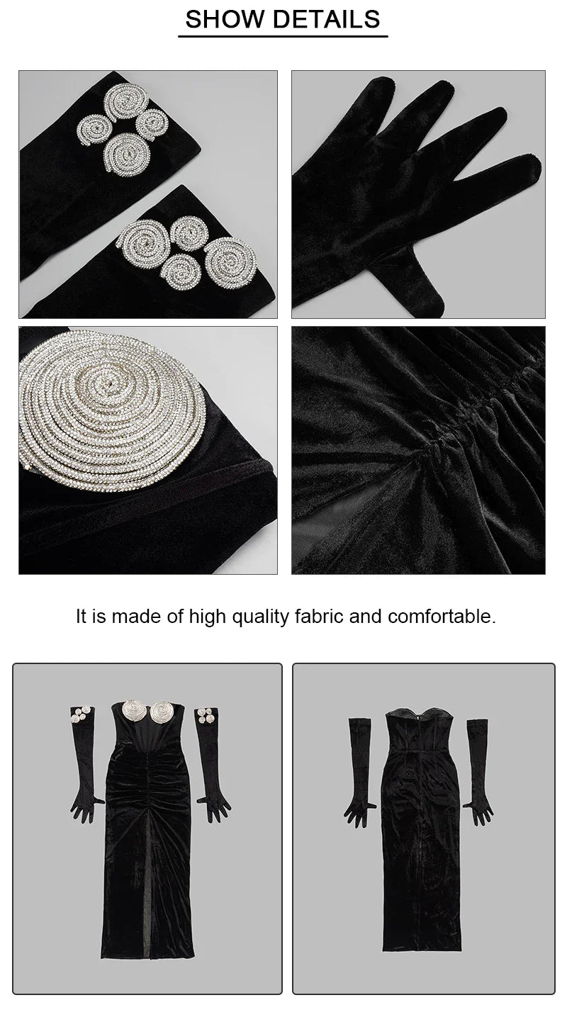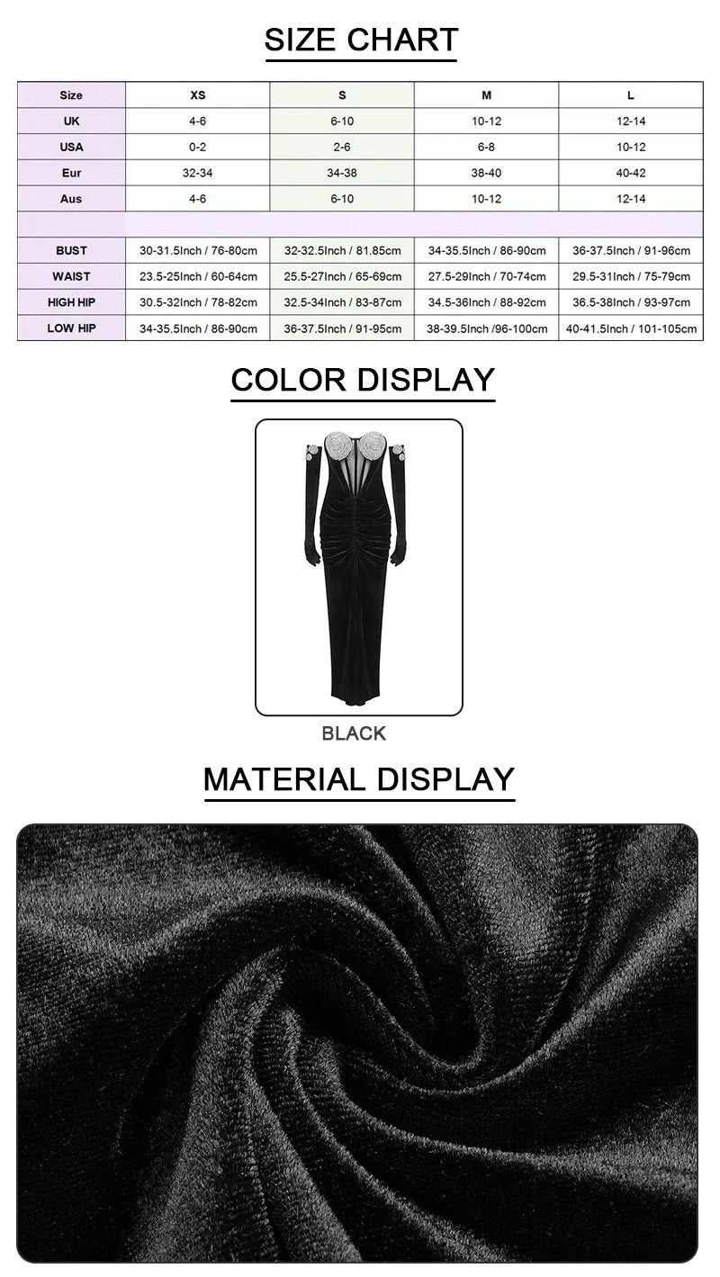 Indulge in elegance and sophistication with the Aviana Velvet Maxi Dress. This classy gown exudes luxury with its velvet fabric and graceful design. Complete the look with the included gloves for a truly exclusive touch. Elevate your wardrobe with this must-have piece.