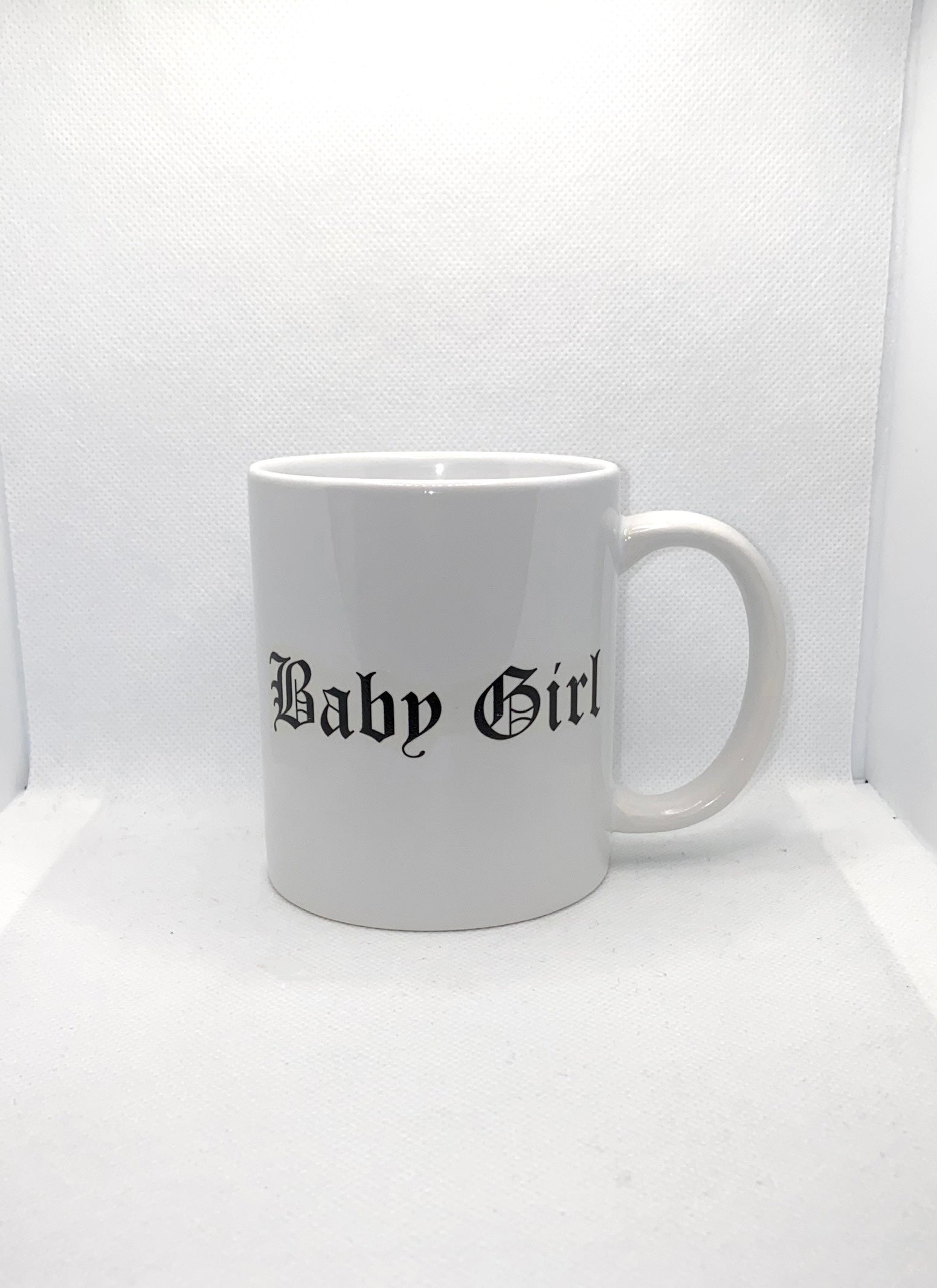 This Baby Girl Mug is a must and it's perfect for those early morning coffee brakes. Featuring a all white glass mug with a 'Baby Girl' printed design on both sides. we our in love.