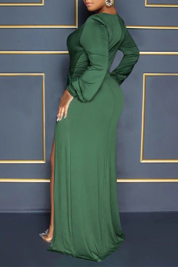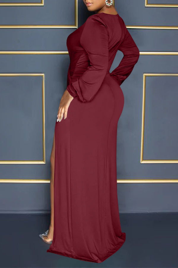 Stay on trend this season in our new elegant. v neck dress. We especially love the solid color fabric and think this piece will be a new favorite in your closet!