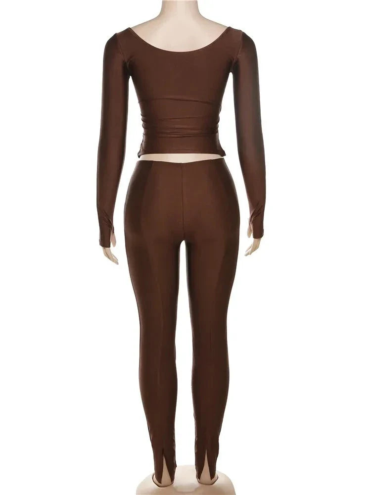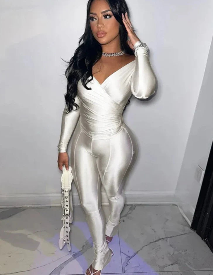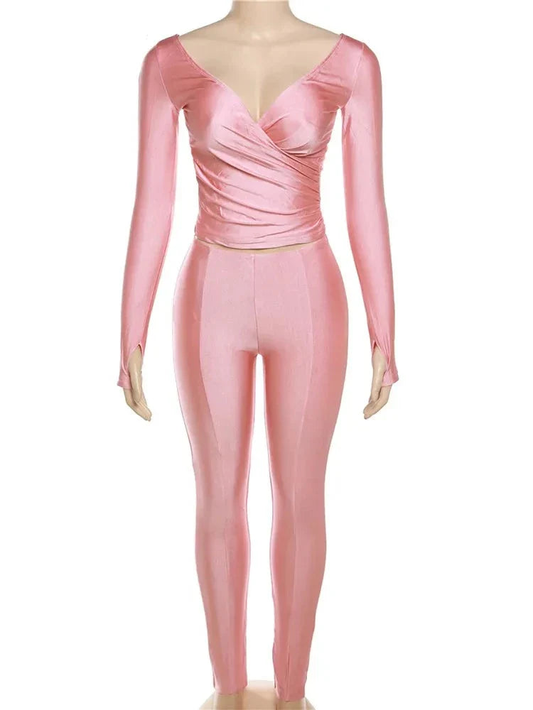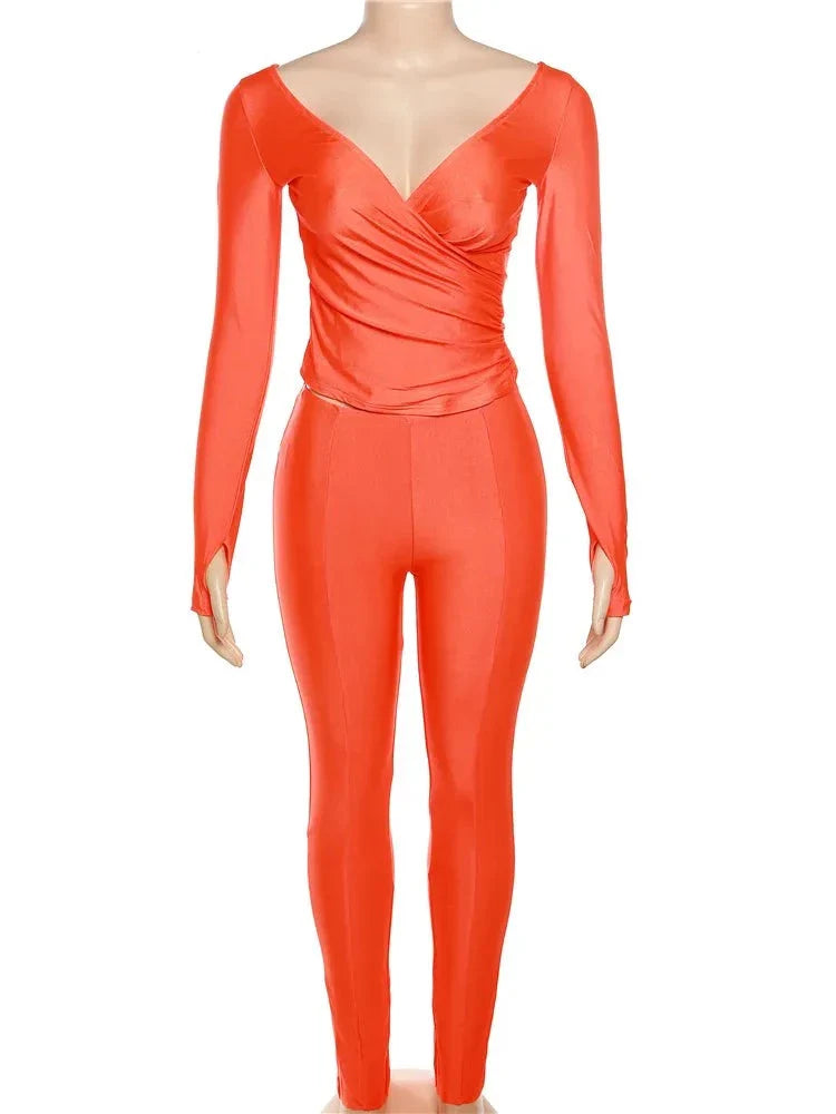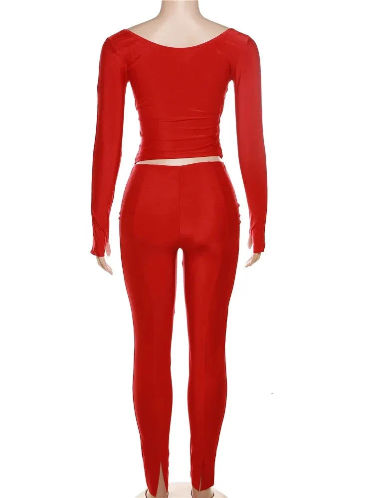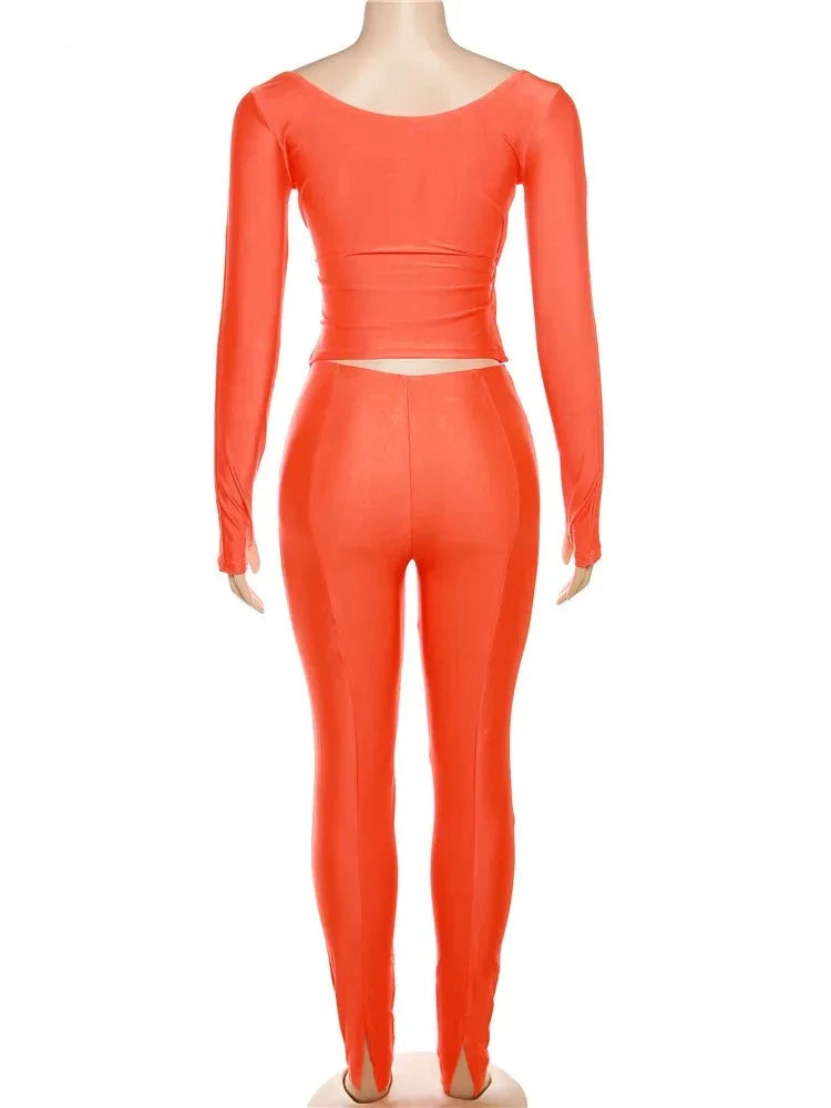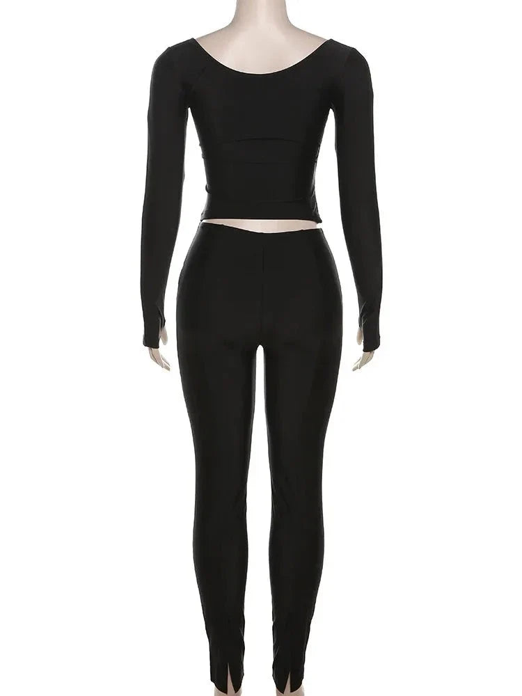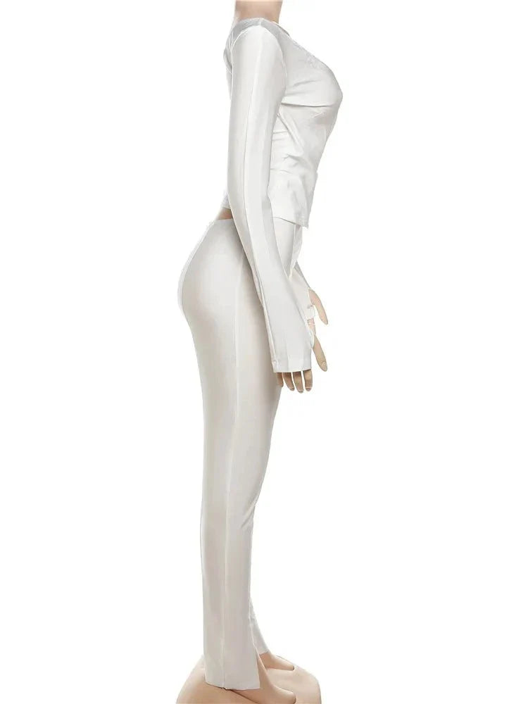This Bar Set High Long Sleeve Matching Set is sure to be the answer to all your styling dilemmas. Featuring a stretch high shine material with a long sleeve top and high waisted pants to match. We are in love!