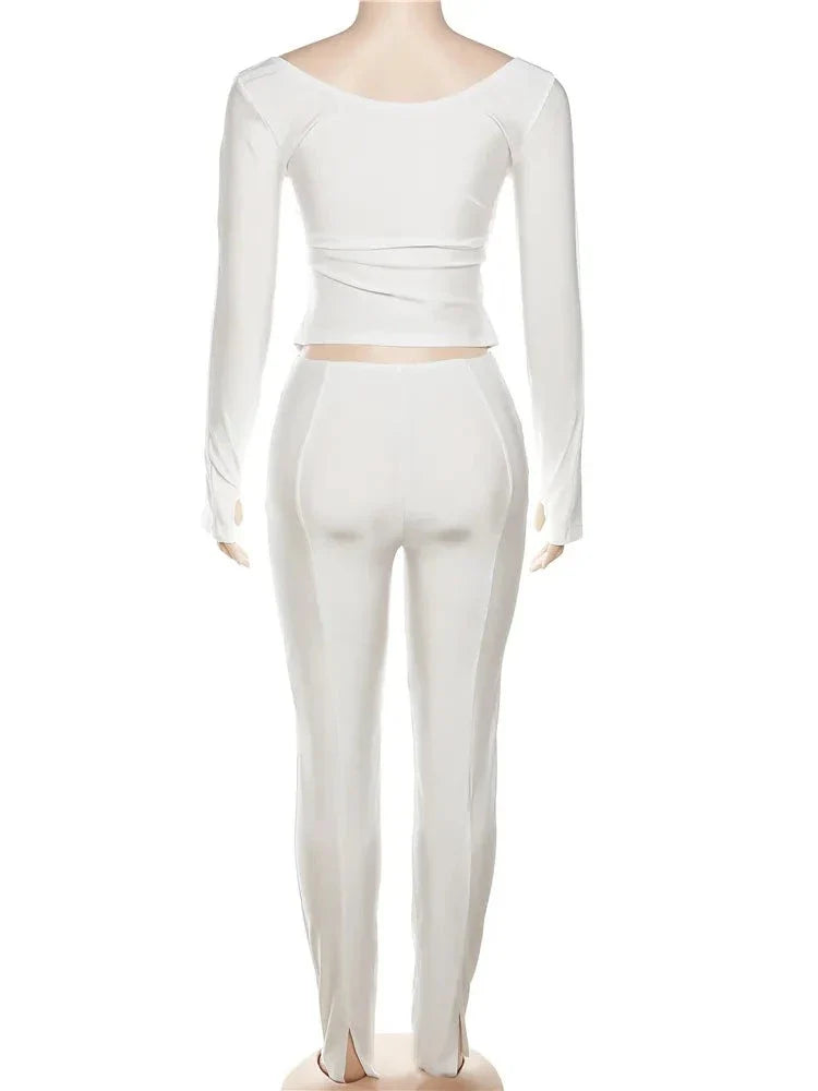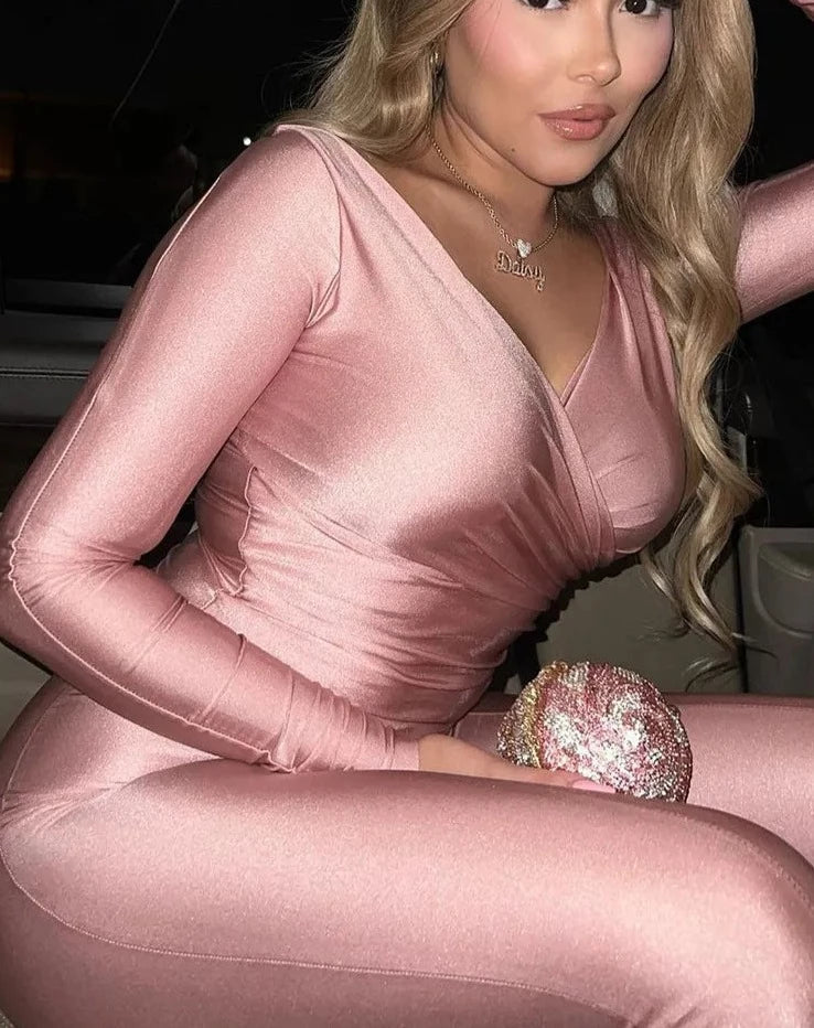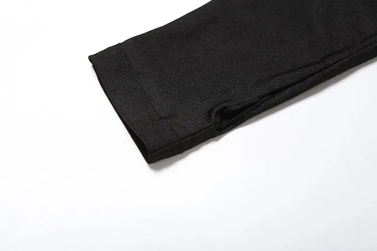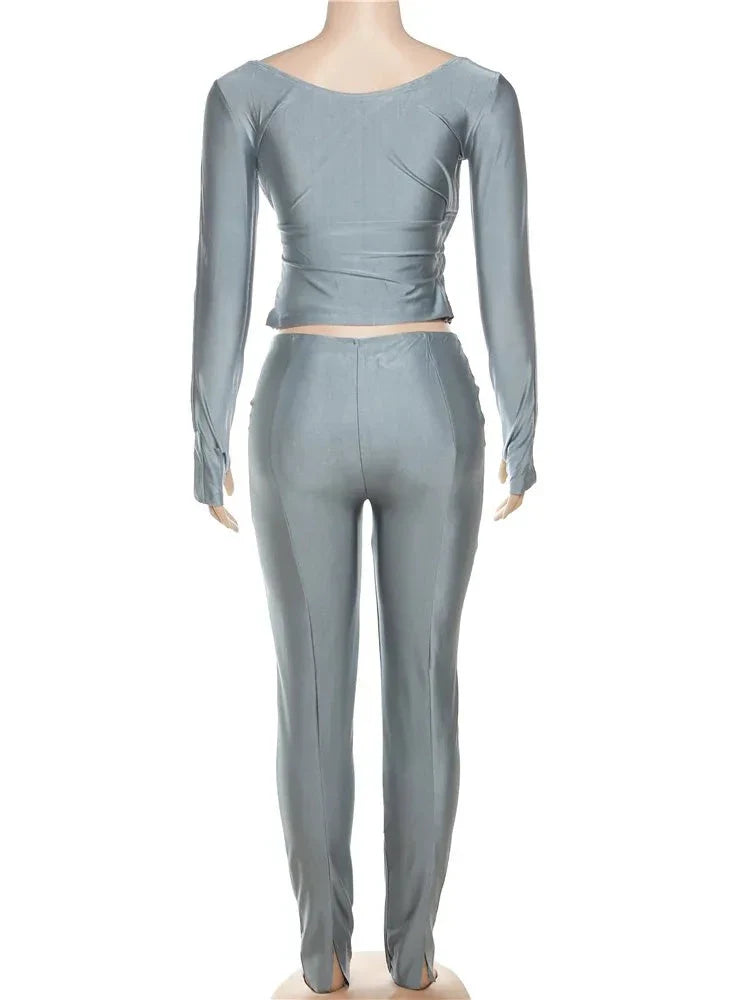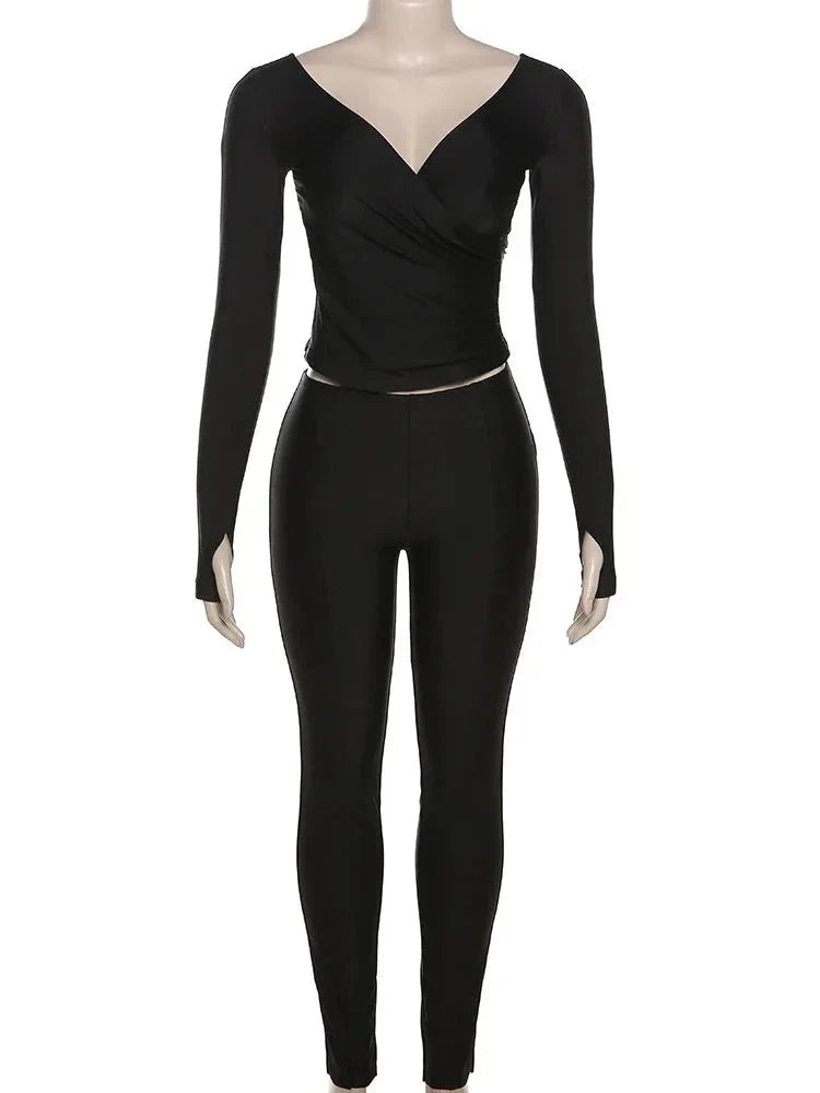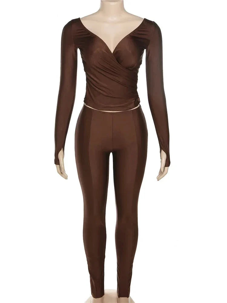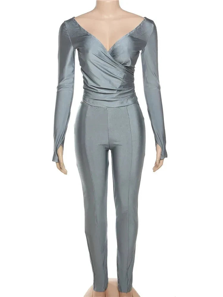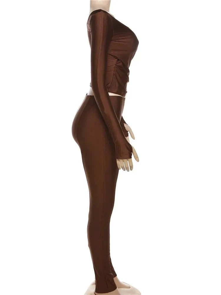 This Bar Set High Long Sleeve Matching Set is sure to be the answer to all your styling dilemmas. Featuring a stretch high shine material with a long sleeve top and high waisted pants to match. We are in love!