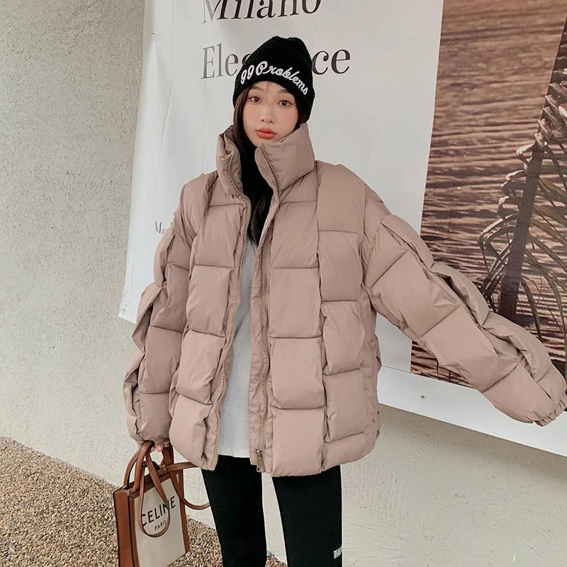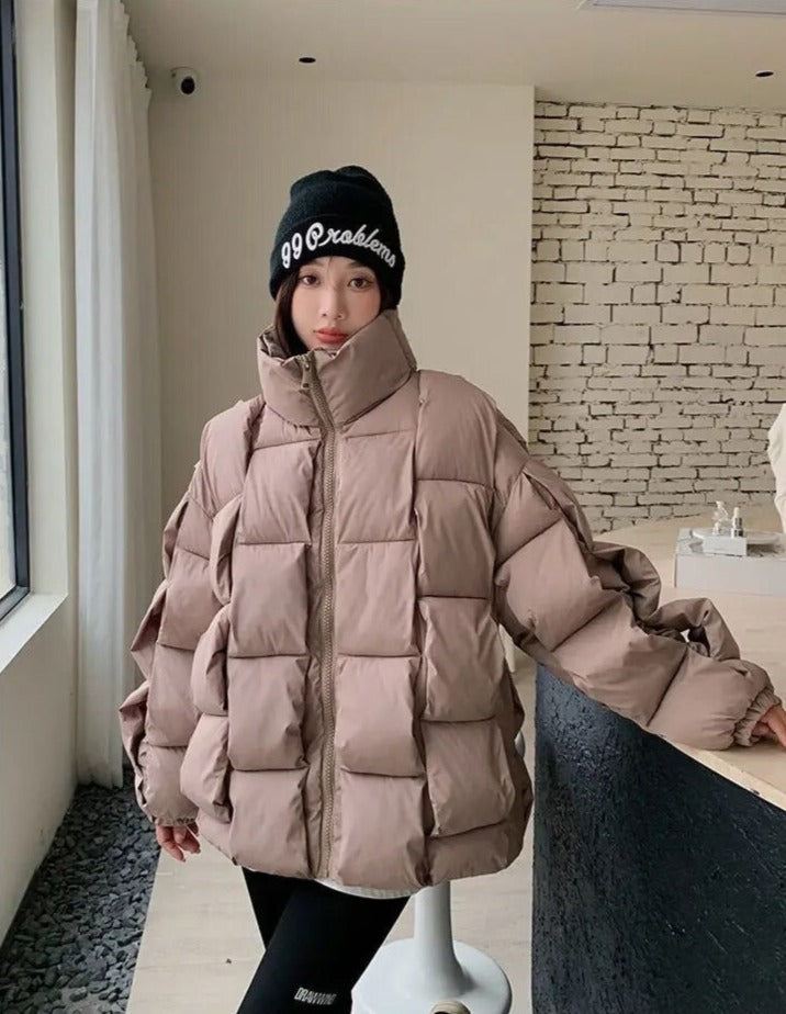 Switch up your new season style game with this Basket Case Puffer Jacket. it is everything we are loving for those cold days and beyond. This jacket features a puffer material with a zip front design and a 3D dimensional knitted style. what more could you want? Pair this puffer jacket with the same color pants and chunky sneakers for an effortlessly chic finish.