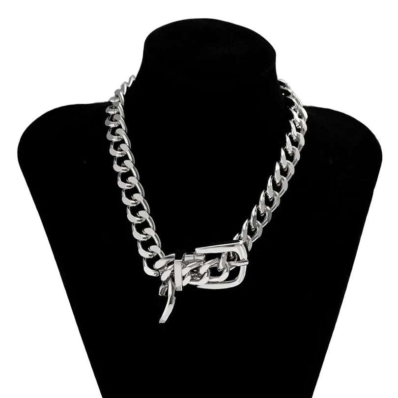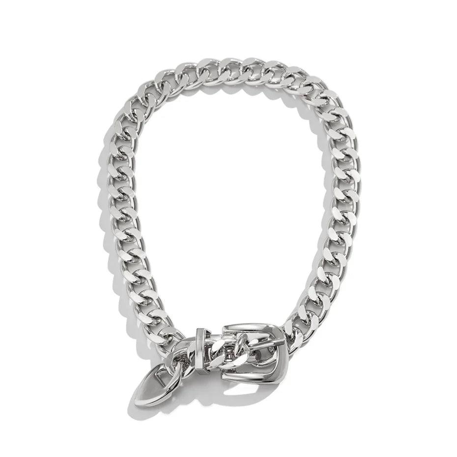 Instantly elevate your outfit of the day with this Belt Choker Necklace. Brought to you in a gold and silver hue material with a chunky link chain and buckle detailing for that extra added edge. you really can't go wrong. Style this choker necklace seamlessly with your favorite wardrobe pieces for a statement finishing touch to any look.