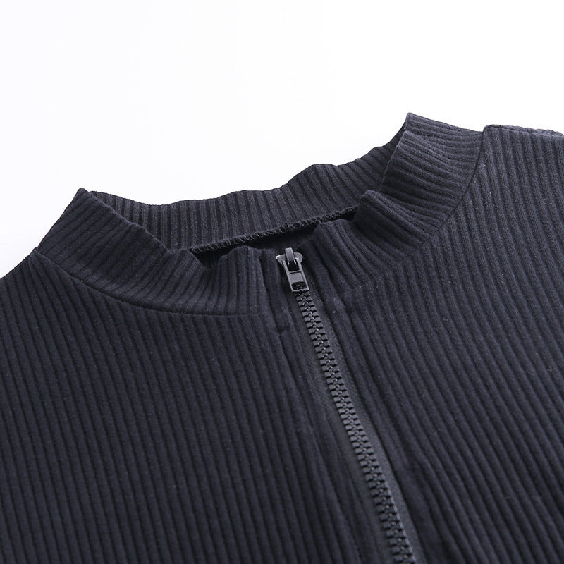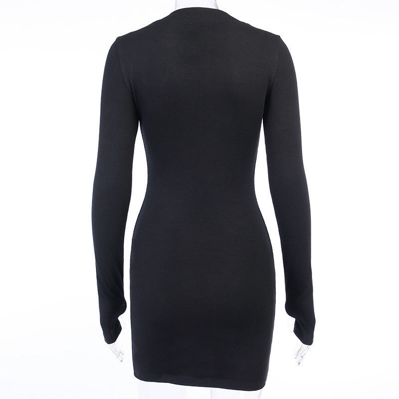 Obsessed with this dress for those off duty days. This cute dress features long sleeves with thumb holes. a zip front. mini style and a bodycon fit. This dress is made out of spandex/cotton material. Available in different colors. Team this with some fresh kicks for a look we're vibin' off.
