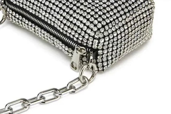 Take your wardrobe to the next level with this Bling Me Out Purse. Featuring an all over rhinestone design with two detachable straps and a zip fastening. we're obsessed.