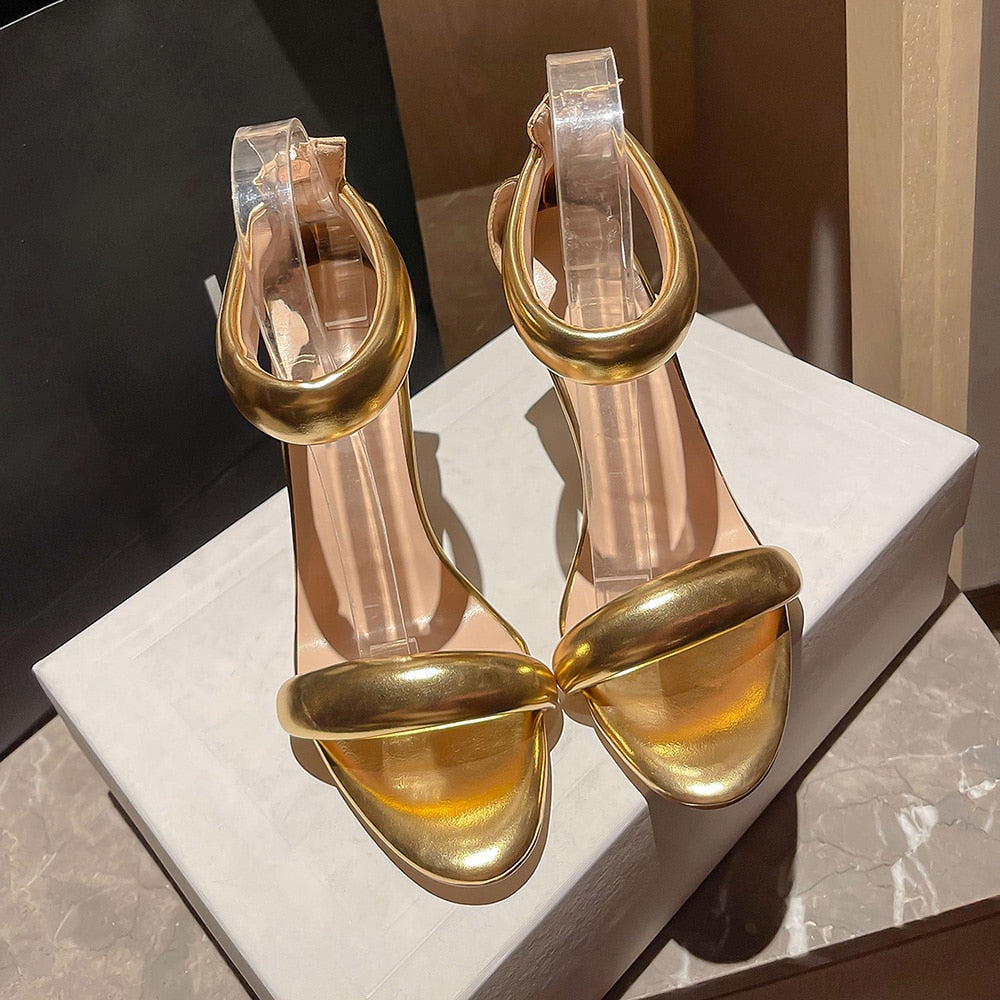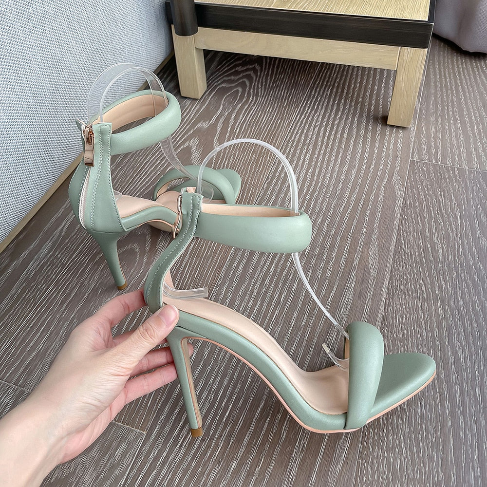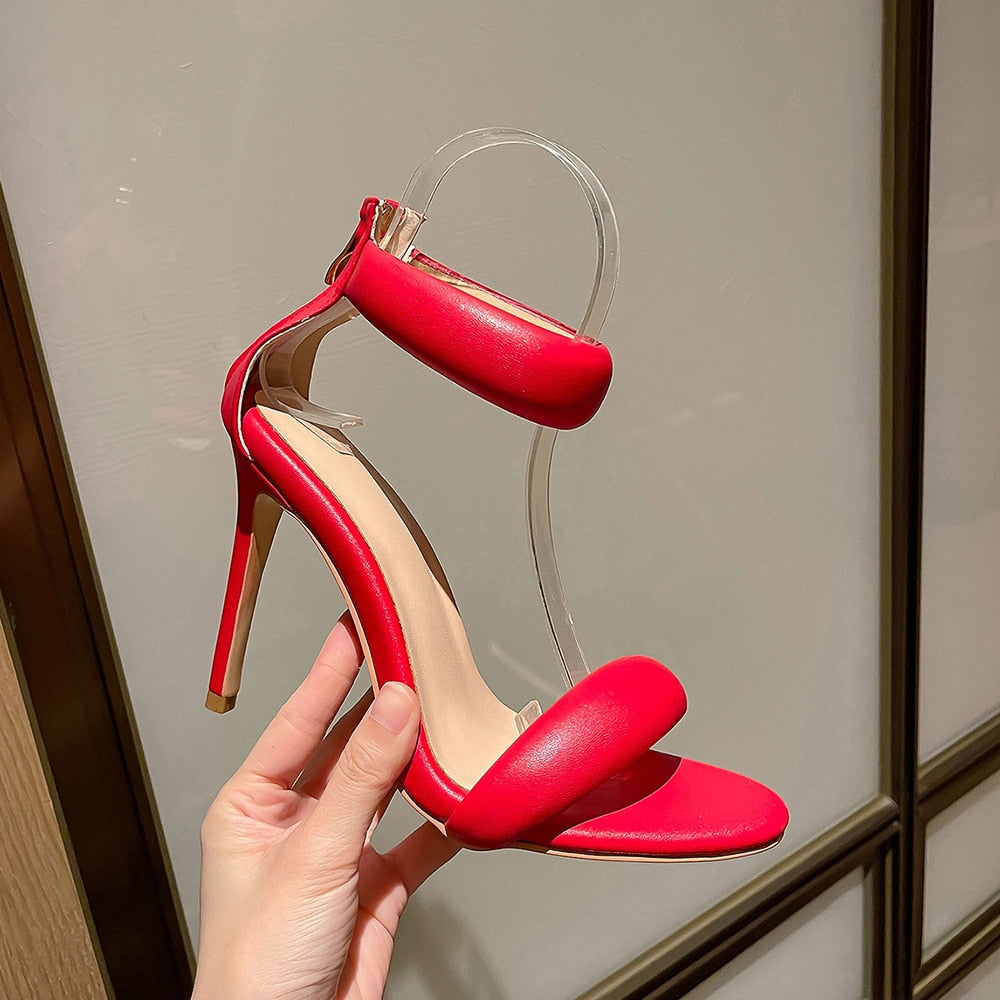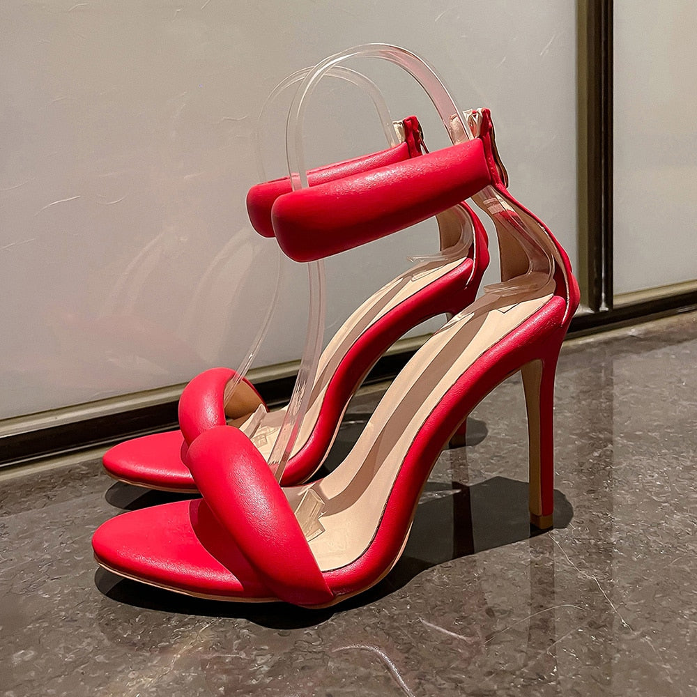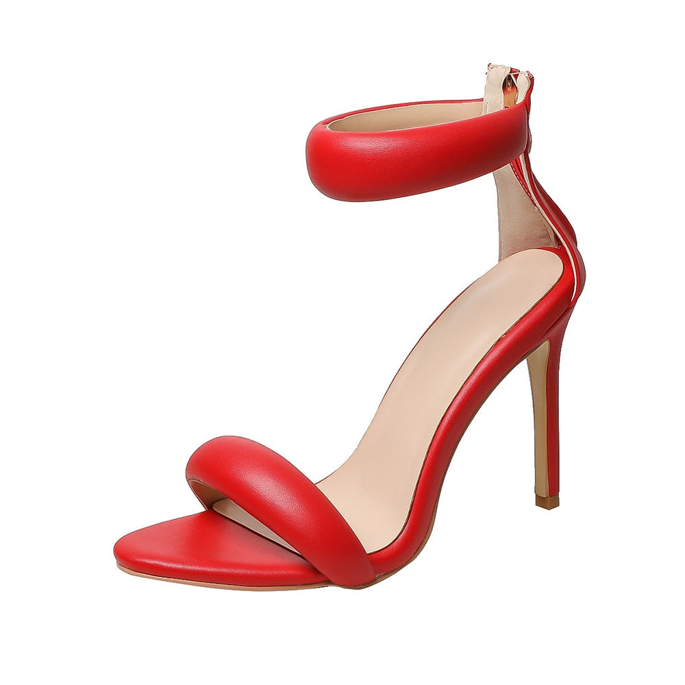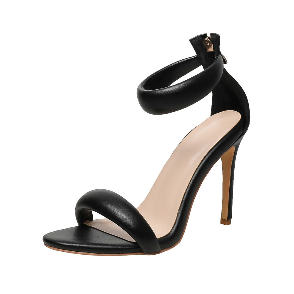 These Bubble Strap High Heeled Sandals are the perfect addition to any weekend fit. Featuring a PU material with a wide ankle strap. zipper closure detailing. and a high skinny heel. How could you say no to these heels?