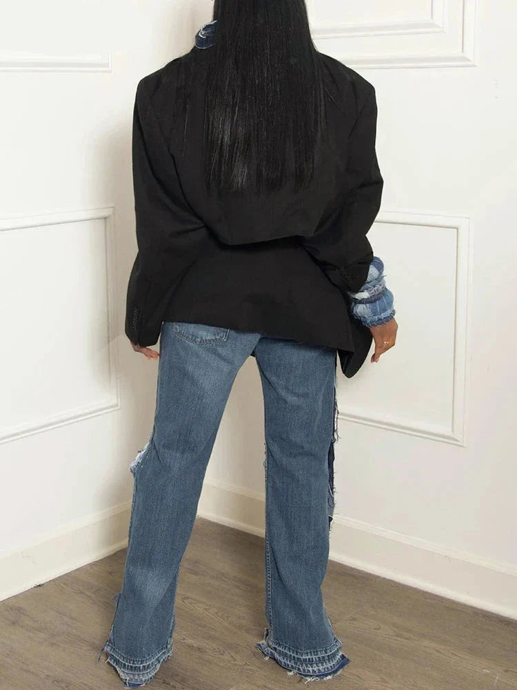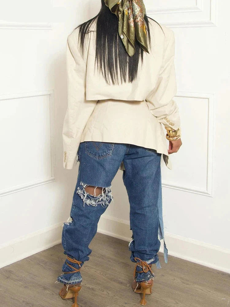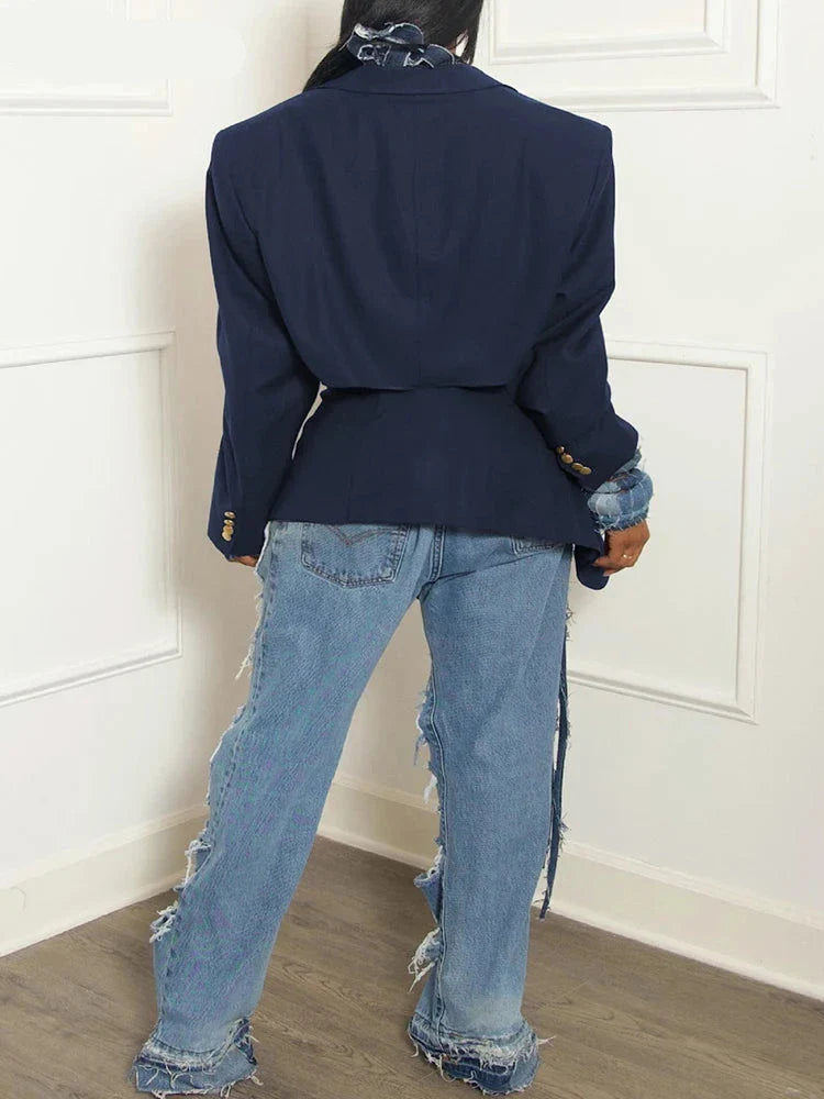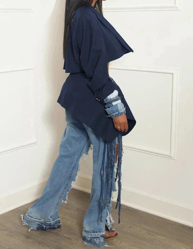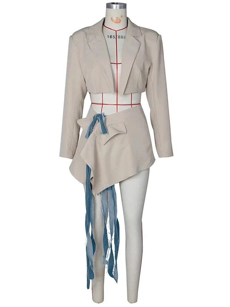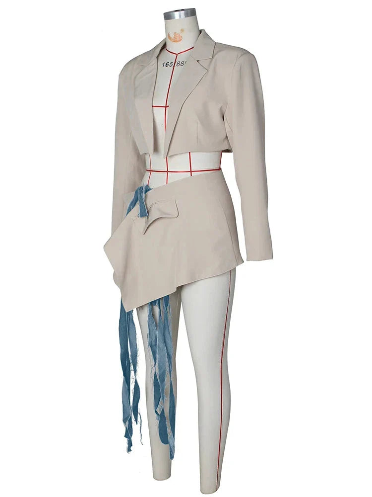 Nail that fiercely feminine vibe with this Can't Back Out Now Blazer Two Piece Set. Its PU hue material is so on trend right now and its crop top blazer and a wrap mini skirt detail with a side denim tassel design is sure to elevate your look to new heights. This blazer set is super flattering on your figure. Style seamlessly with pants. strappy heels and accessories for a vibe that won't go unnoticed.
