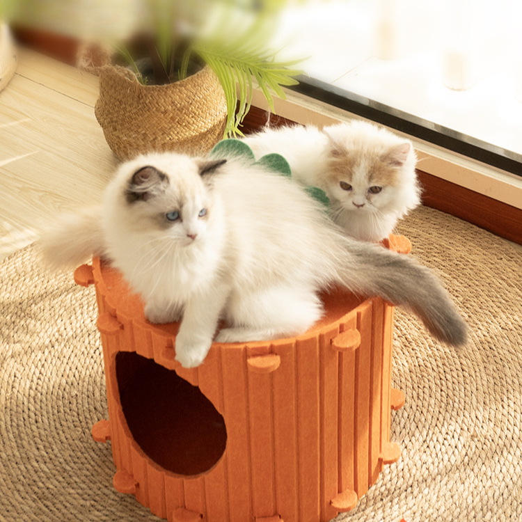 Unleash your cat's wild side with our Carrot Cat Tunnel Felt Cave Bed! Your feline friend will love exploring this cozy and spacious tunnel. providing them with hours of entertainment and comfort. Give your cat the gift of adventure with our unique and high-quality cat bed.