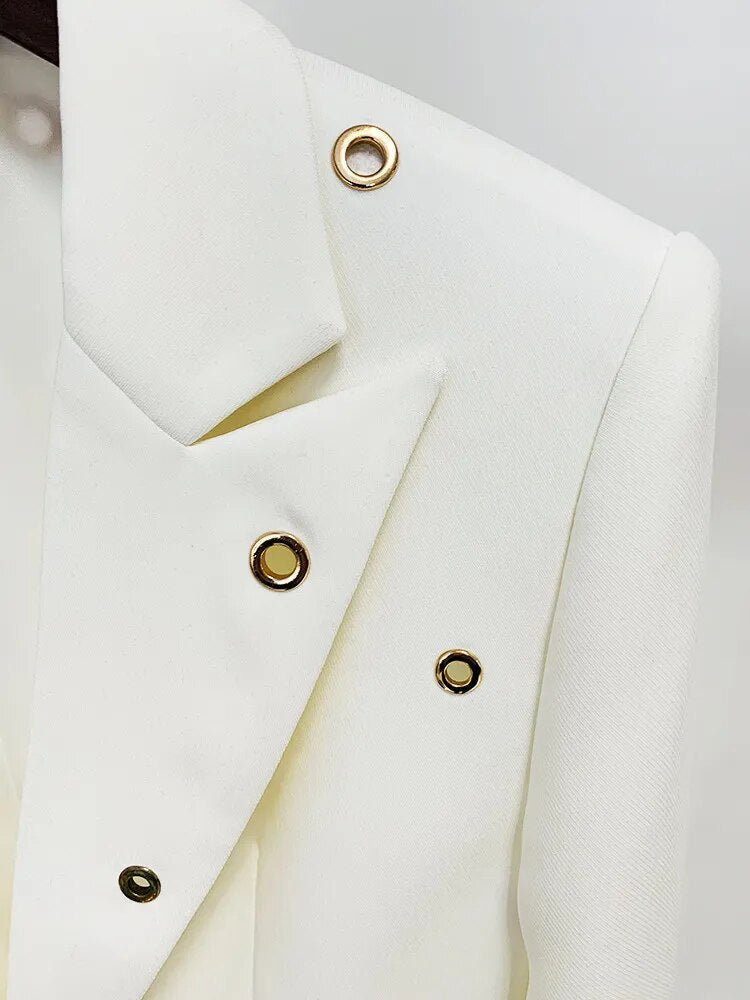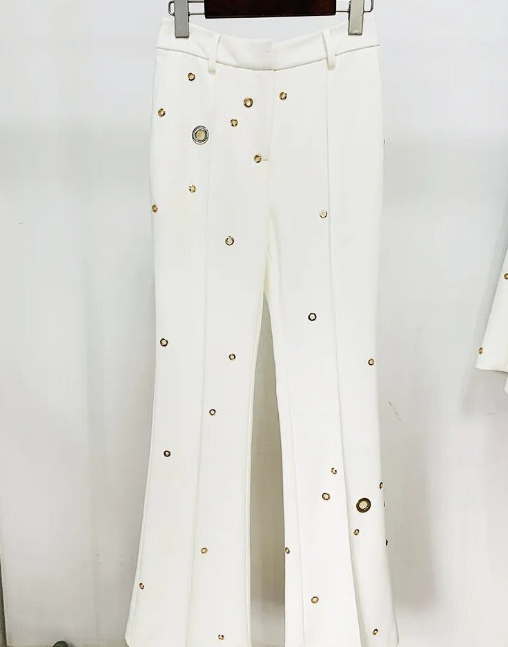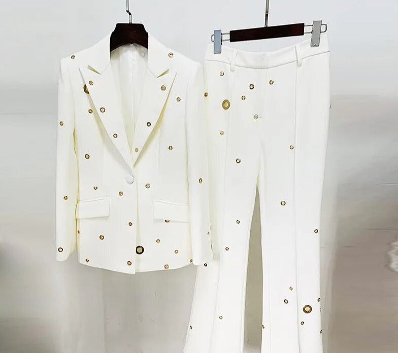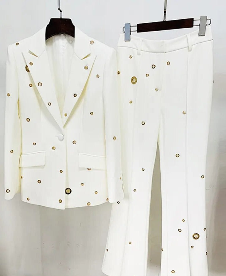 The Cassandra Blazer Pants Set is perfect for any occasion. Crafted from plush. soft fabric. it's both comfortable and sophisticated. With bold styling and a classy after-party look. you're sure to be fashionable no matter the occasion.