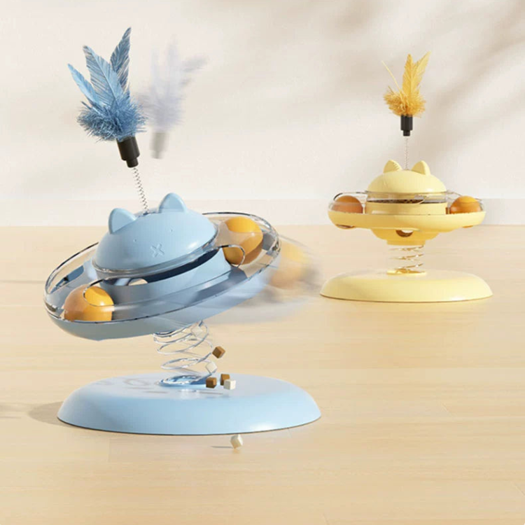 Enhance your cat's playtime with our Cat Toy Leaking Food Turntable. With a rotating turntable design. this toy stimulates both mental and physical activity in your feline friend. The food leakage feature provides a rewarding experience. while the durable construction ensures long-lasting fun. Perfect for any cat owner looking to keep their furry friend entertained.
