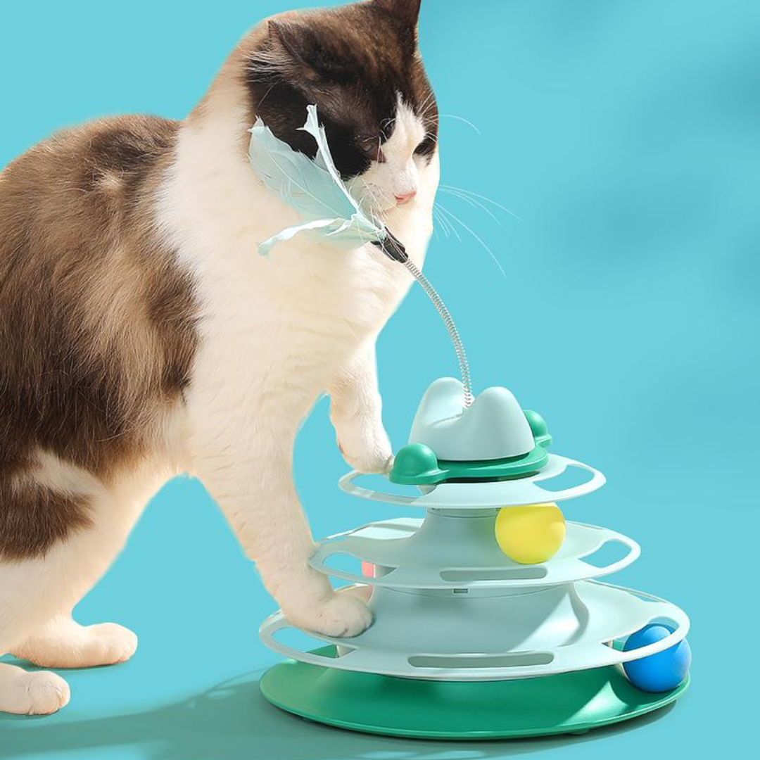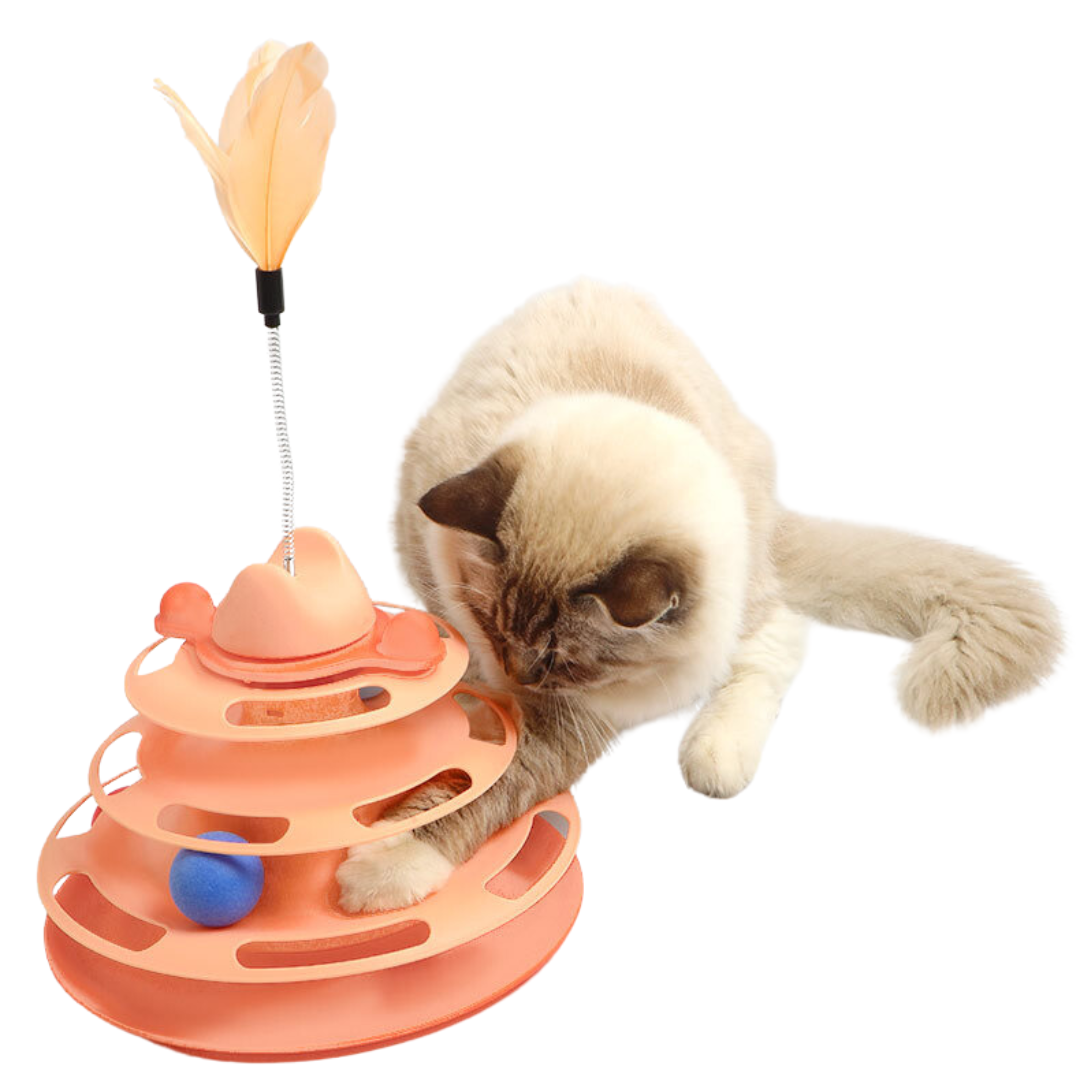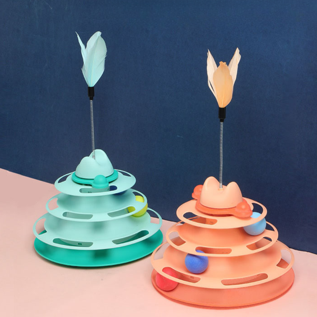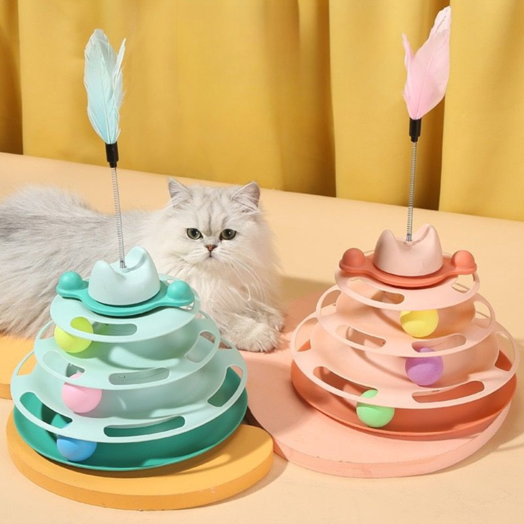 The Tower of Tracks Interactive Turntable Cat Toy is the ultimate playtime experience for your feline companion. With 4 layers of tracks for ball rolling and 3 spinning balls. this toy is guaranteed to keep your cat engaged and entertained for hours. Its interactive design stimulates your cat's natural instincts. providing exercise and mental stimulation for a healthy. happy pet.