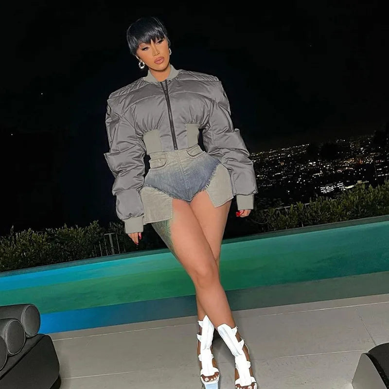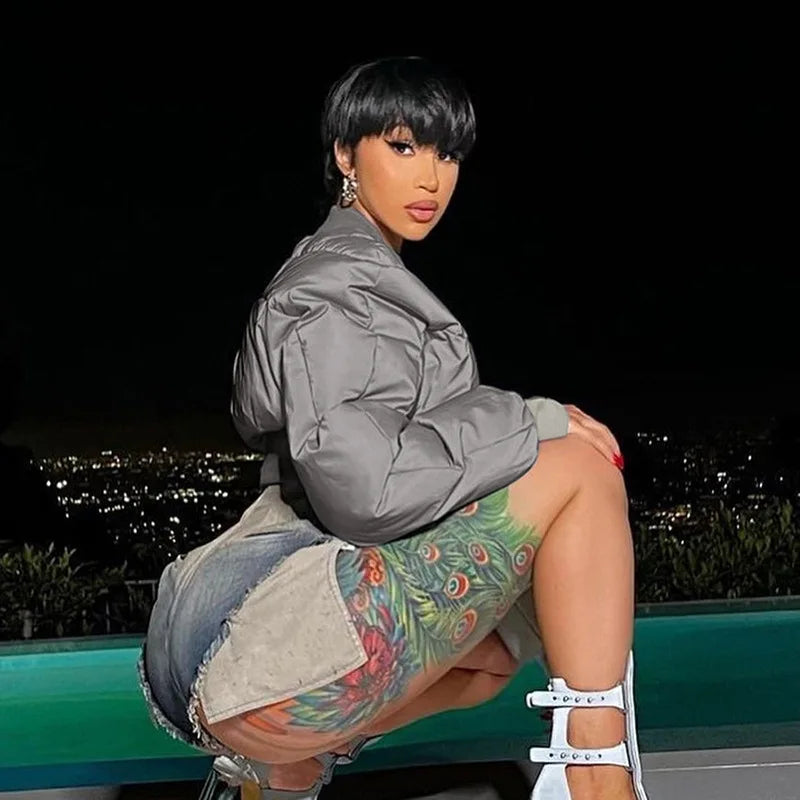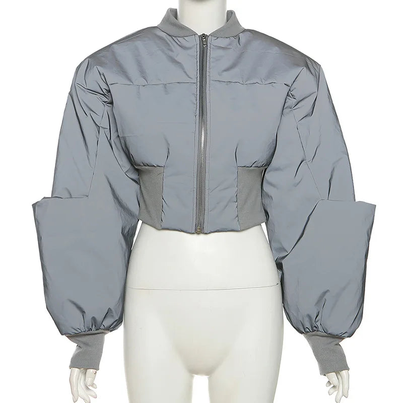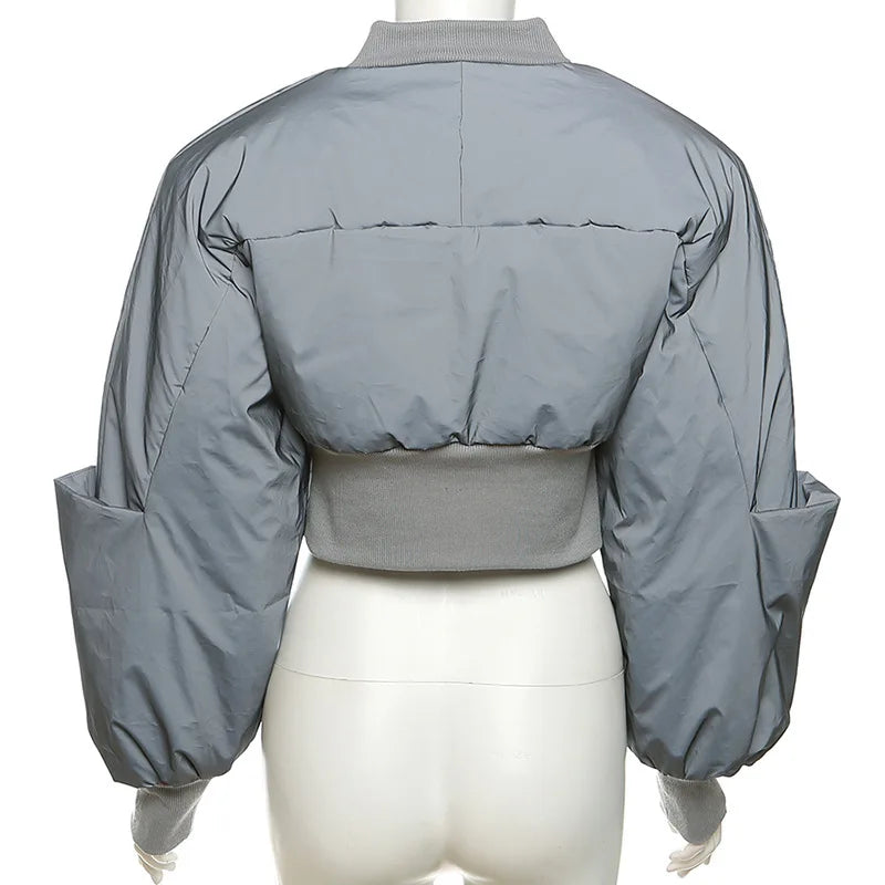 Add some seriously chic vibes to your off-duty wardrobe with this Catch My Reflection Cropped Puffer Jacket. Featuring a grey reflective material with a bubble design and a cropped length. Style with blue jeans and fresh kicks or heels for a look we're loving.