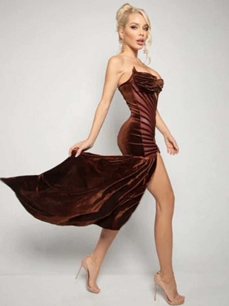 The Celeb Asymmetrical Bodycon Draped Velvet Dress is the perfect addition to any special occasion. Its draped velvet design flatters any silhouette. while the asymmetrical cut adds a modern twist. Be ready to make a statement at your next birthday celebration!