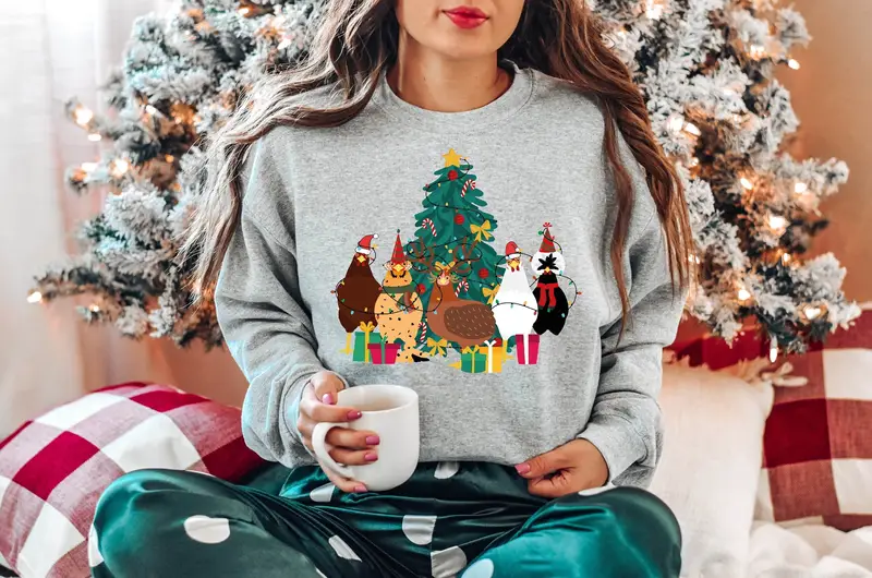 Celebrate the holiday season wearing our cute christmas chicken sweatshirt.Perfect Christmas gift for your mom. wife.friend and of course yourself!