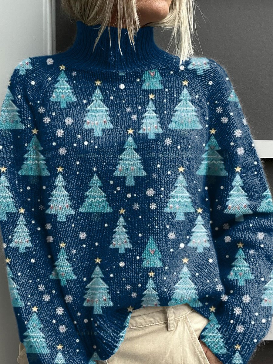 Christmas Tree Pattern Art Print Knit Turtleneck Pullover Sweater