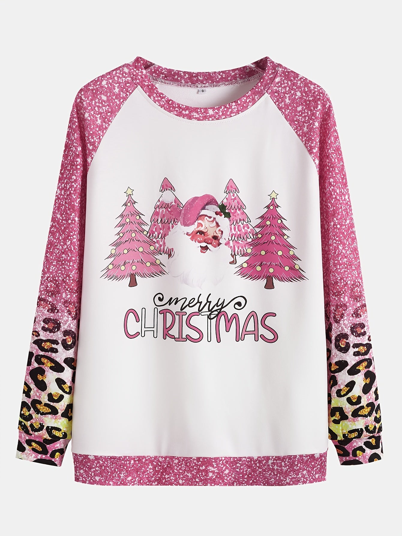 Christmas Tree & Santa Print Pullover Sweatshirt