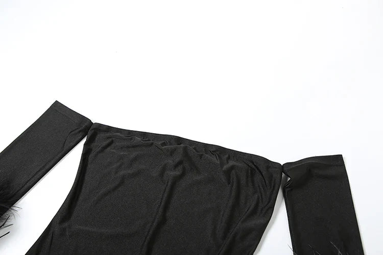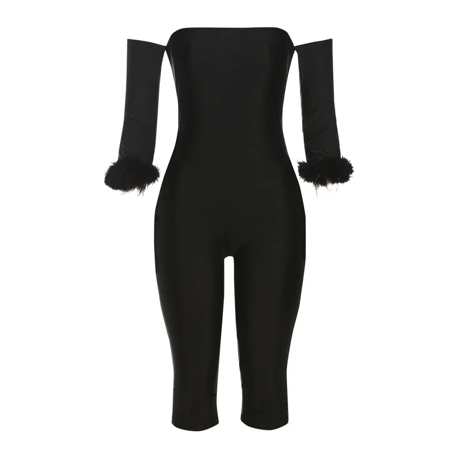 Introducing the Ciara Feather Romper. the perfect addition to any wardrobe. With its unique feather detail on the arm. this romper is a must-have for any fashion enthusiast. Elevate your style game with this versatile and trendy piece.
