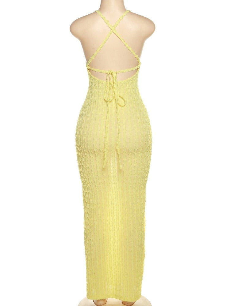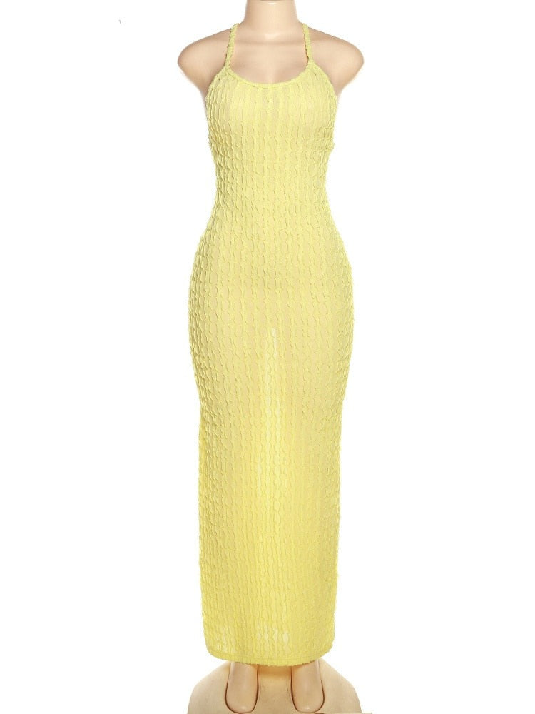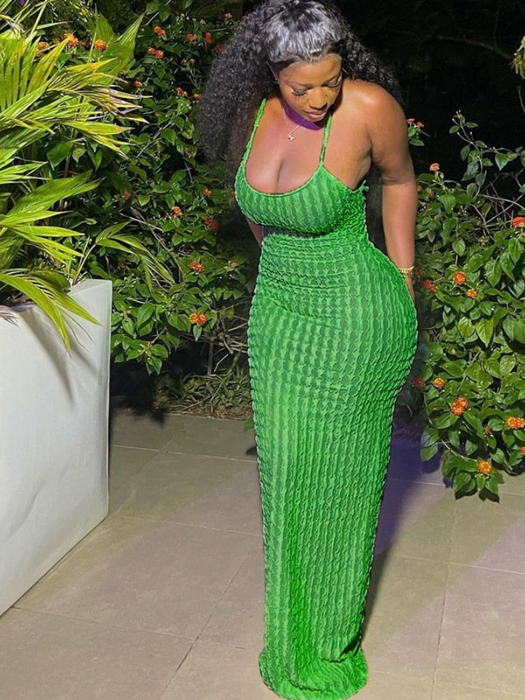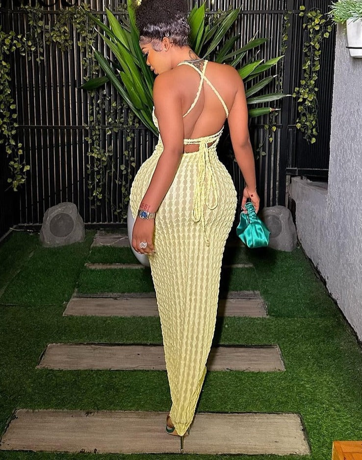 This simple Clash Of Thrills Bubble Maxi Dress is perfect for any upcoming special events. Featuring a light bubble material with a strappy lace-up back in a maxi style. team it with some strappy heels and a mini bag to finish the look.