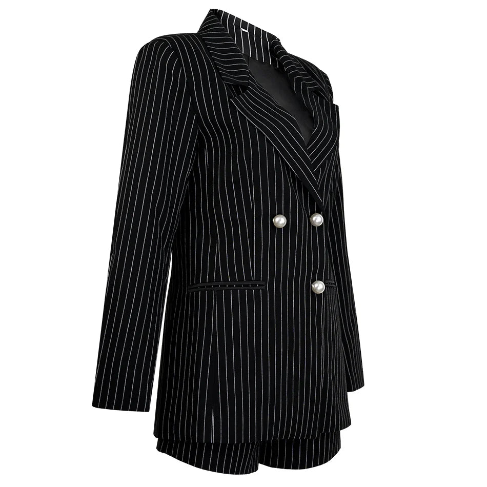 When the dress code calls for glam vibes. there is no doubt but to choose this Classy Night Out Blazer Two Piece Set. Made from a black stripe nylon material with a tailored fit blazer and shorts to match. how could you resist? This two-piece set is a must-have for your weekend wardrobe and you're sure to be as obsessed as we are. Team with our Diamond Pants and a mini bag for a seriously chic look that is sure to make you feel like your best self.