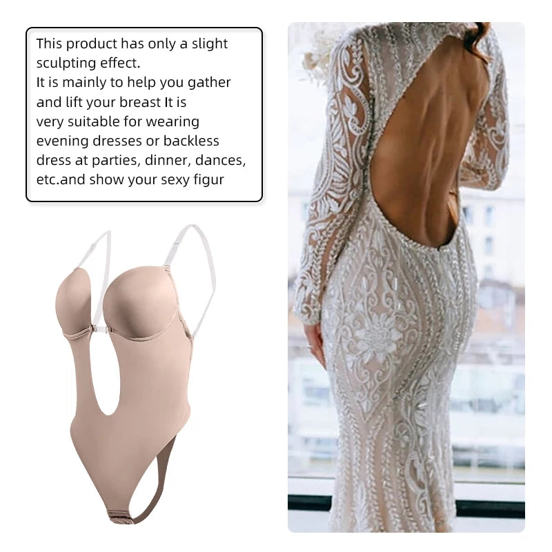 The shapewear creates a sexiest appearance under the clothing. and the clear stripes express your perfect shoulders and perfect back. The bra pad is well supported and provides a lift for your breasts. The adjustable shoulder strap and steel ring between the two cups are designed to better adapt to the crossed shoulder straps. support the breast. gather the breast. and prevent the breast from sagging. The length of the shoulder strap can be adjusted. There are 3 hooks for adjusting the shoulder strap from both sides of the jumpsuit. You can adjust it when you think the shoulder strap is a little big or small. If you don't like the shoulder strap. you can change it from Remove the one-piece suit. Adjustable shoulder strap and transparent anti-slip strip. The transparent. detachable bra straps are easy to adjust to fit. Suitable for a fuller neckline. The crotch is an adjustable hook. suitable for any length . so you don't have to worry about inconvenience when you go to the toilet. There is enough support on both sides of the upper part to prevent your breasts from being scattered. ensuring that your shape is perfect in any occasion. such as weddings. parties. clubs or daily life.
