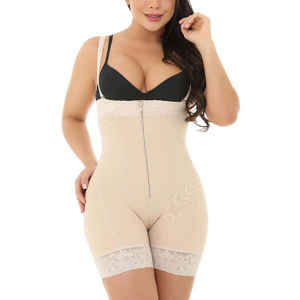 NON-SLIP SHOULDER STRAP: This faja bodysuit Straps are fully adjustable and non-slip design. Open Bust design allows you to wear your own favorite bra and push up your breast. effectively immobilize the loose fat that around your armpits and back.front open zipper desgin for easy to wear and take off.