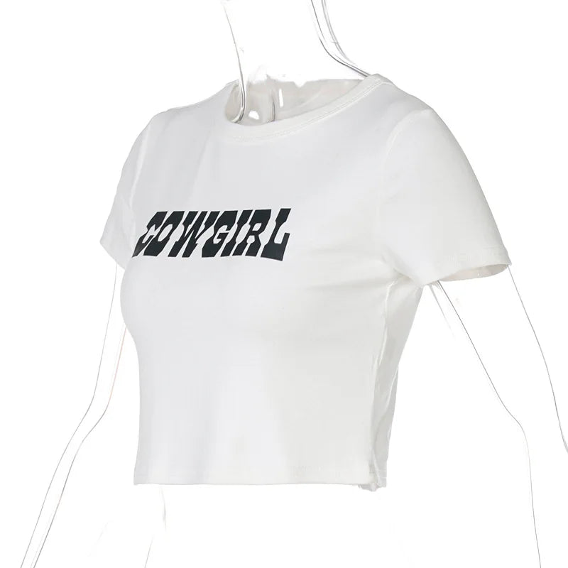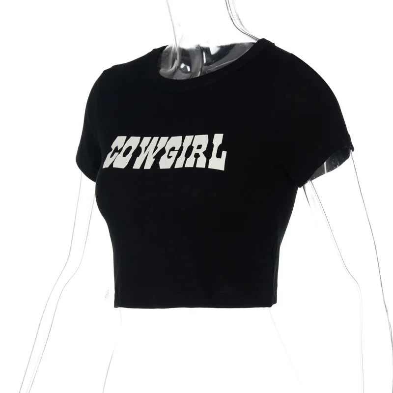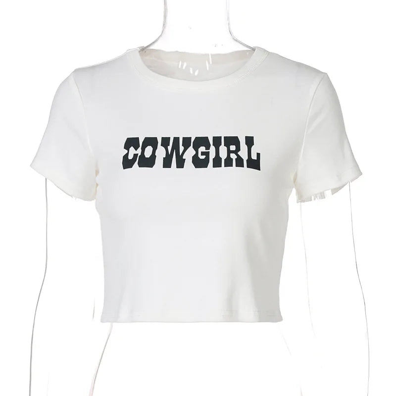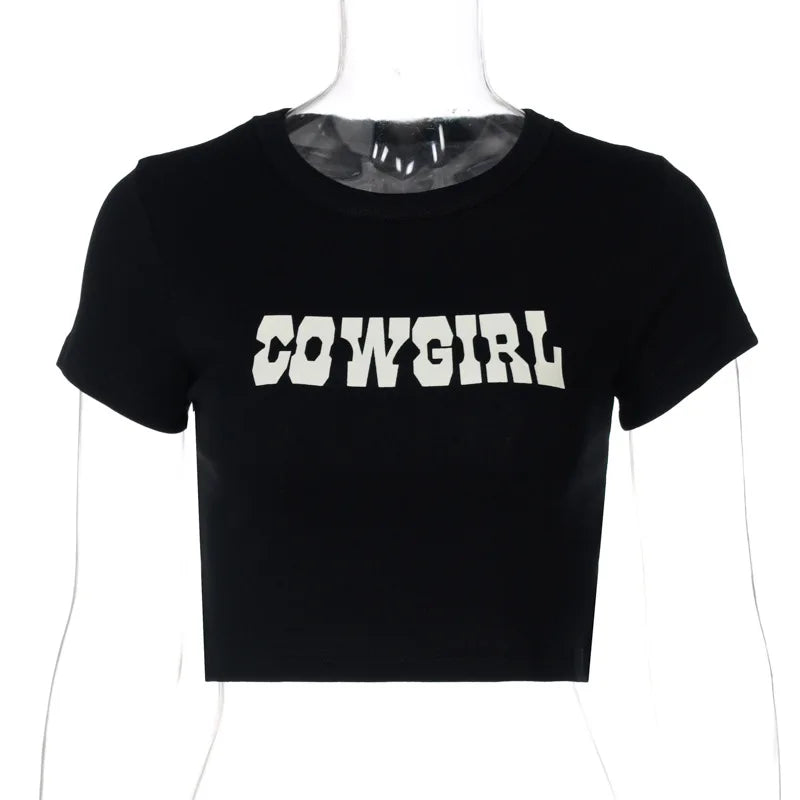 Switch up your style game with this Cowgirl Crop Top. we're in love. It features a cotton material with a 'Cowgirl' print and a cropped length. you won't be able to resist. Pair this top with jeans. your favorite heels and a mini bag for a look that is perfect for your weekend plans.
