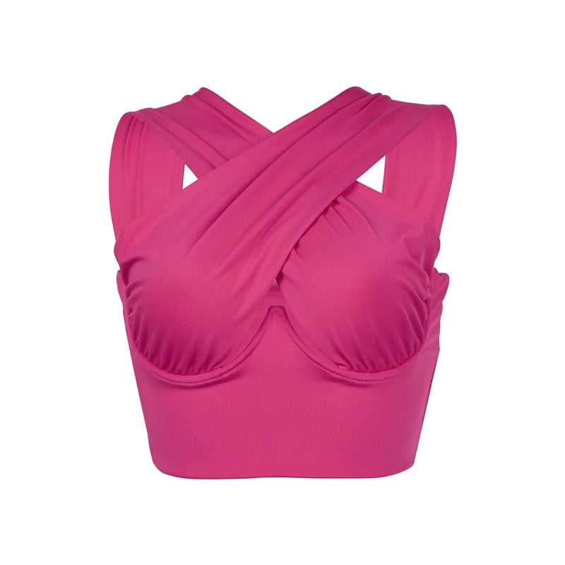 This Criss Cross Crop Top is made with a lightweight. moisture-wicking fabric that will keep you comfortable during your workouts. It features stylish criss-cross straps on the back. and offers medium support and a close fit for comfort and mobility.