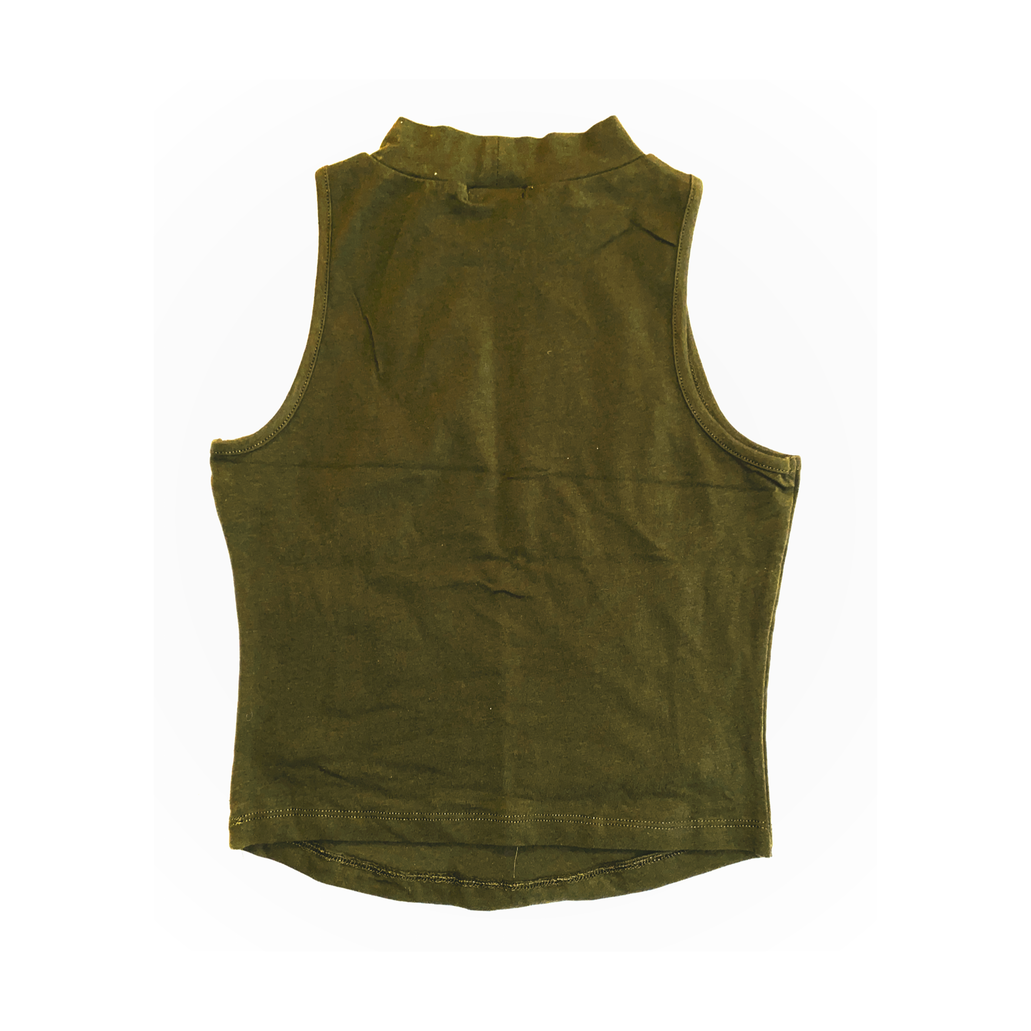 Olive green fitted crop tank top. This shirt is made out of cotton material that has some stretch to it. Super cute and comfortable.