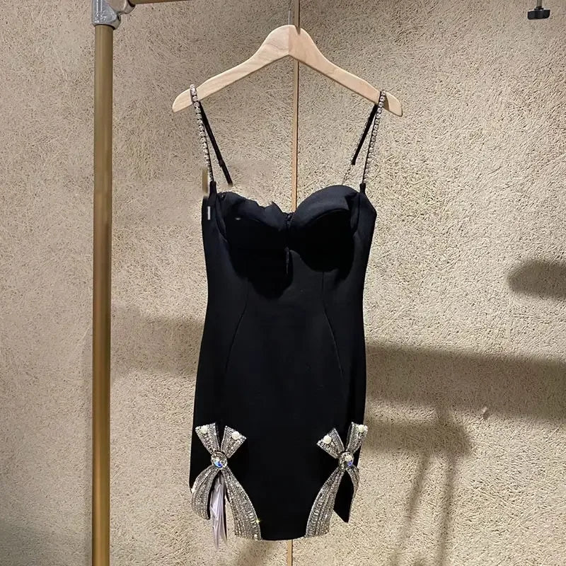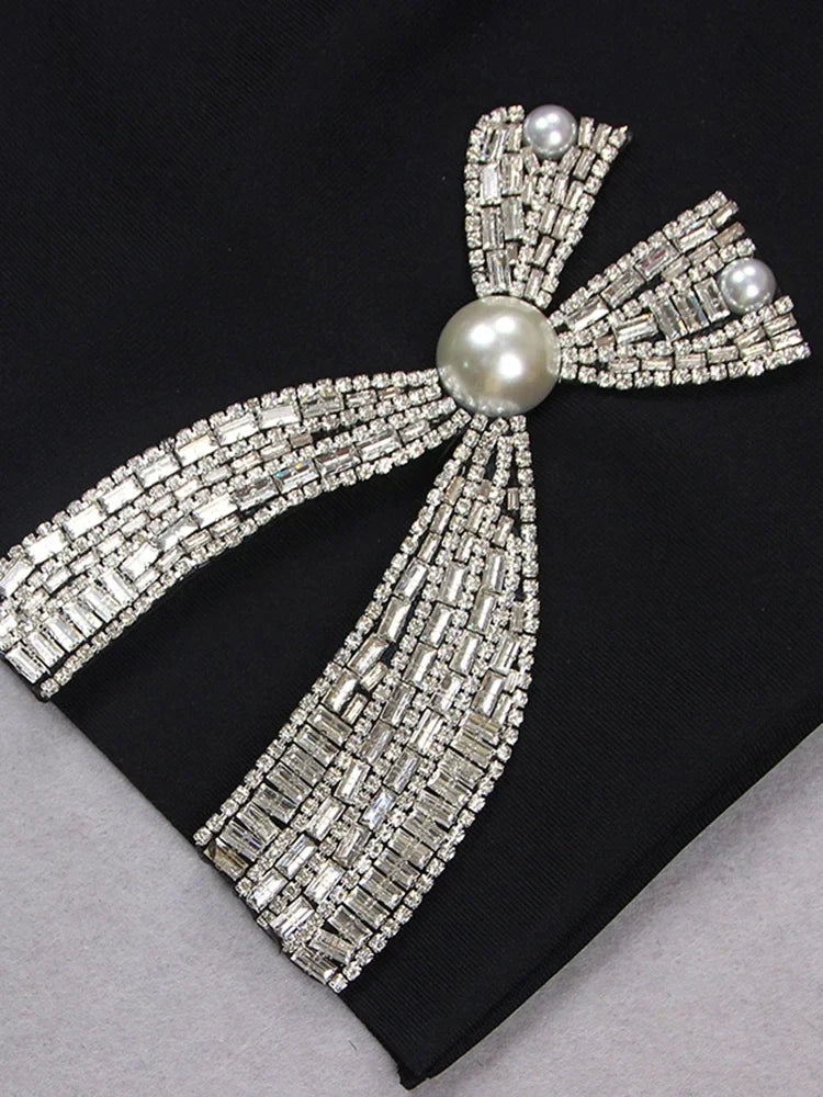 This high-quality Crystal Bow Bandage Mini Dress is a must-have for any fashion-forward individual. Expertly crafted with attention to detail. this dress is perfect for special occasions or a night out on the town. Elevate your style and turn heads with this stunning dress.