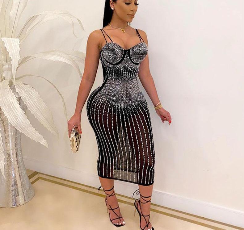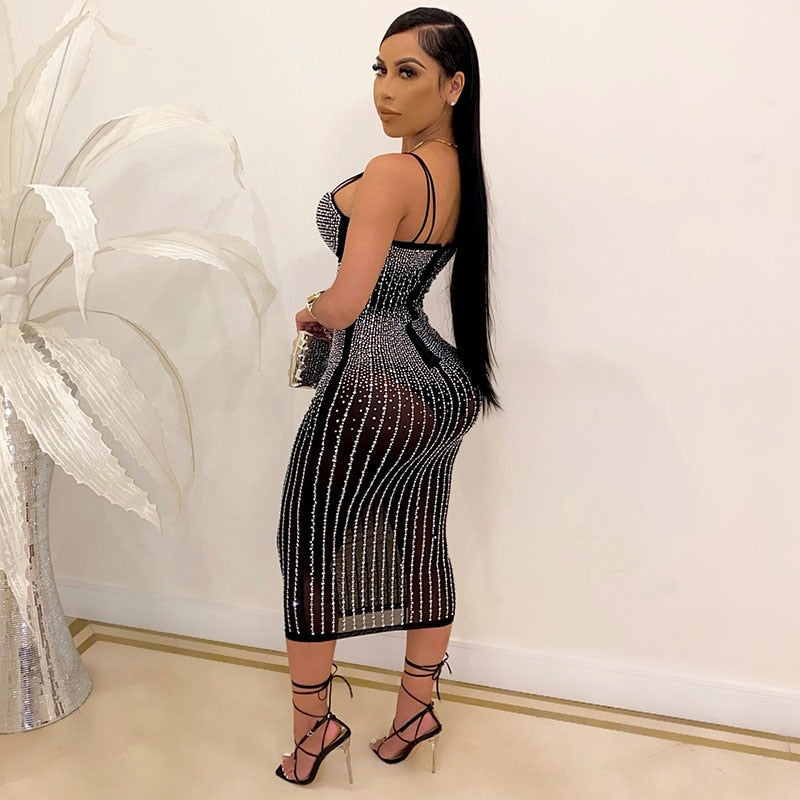 This sexy Crystal Studded Midi Dress is just beautiful. Featuring a mesh stretch material and a all over crystal design. What's not to love? Great dress for special occasions.