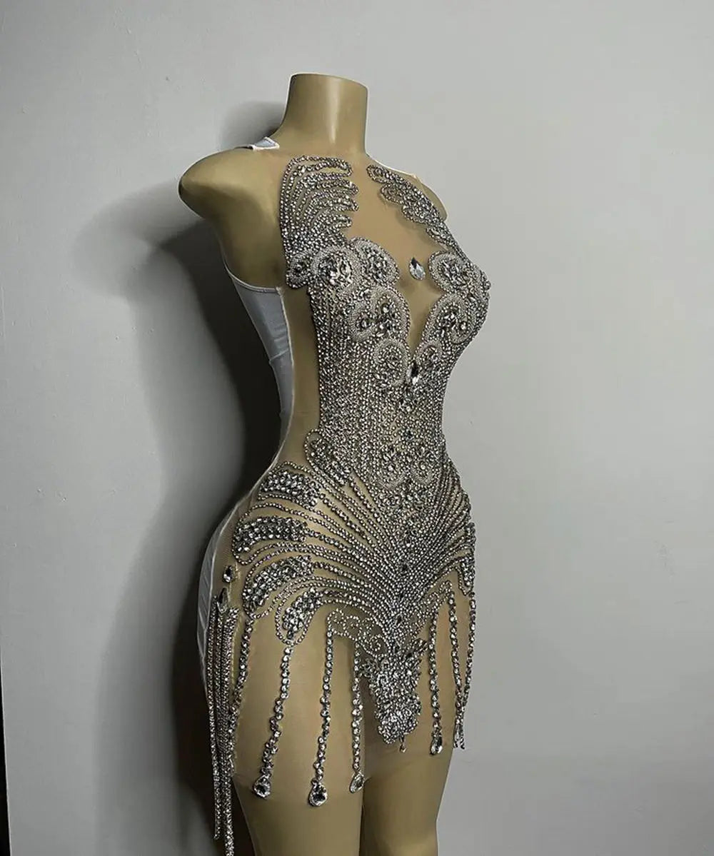 - Please take special care when handling products adorned with rhinestones and mesh. Do not pull on the dress. as these materials are delicate.