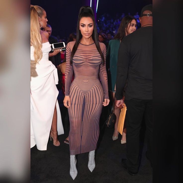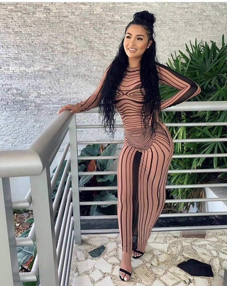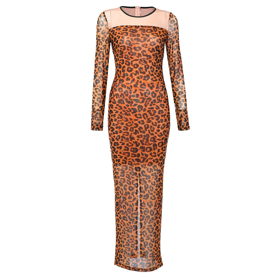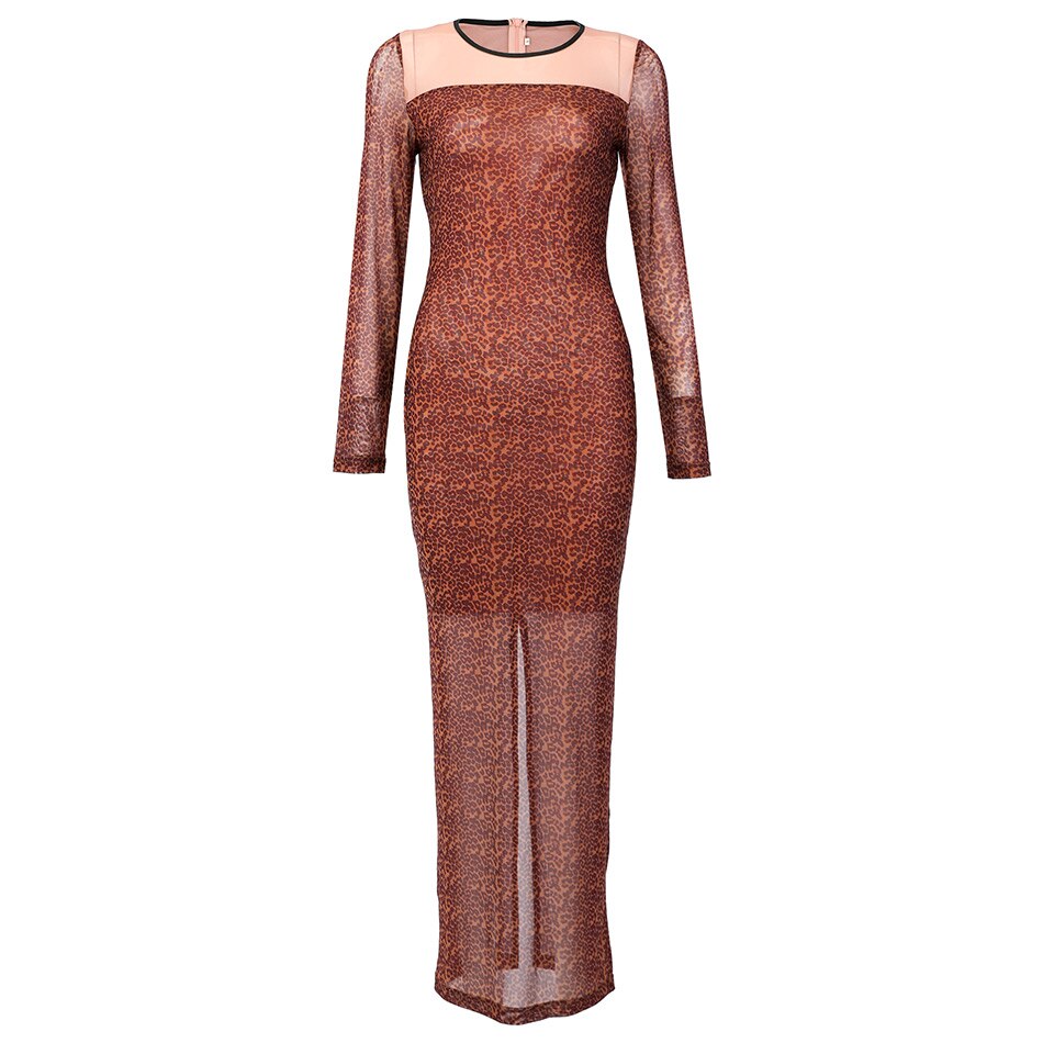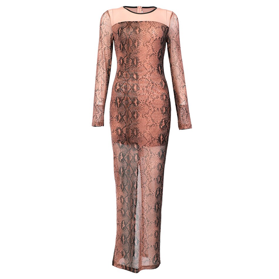 Dare to bare all this weekend in this Kim mesh maxi dress. Featuring a wave print mesh material with round neckline. long sleeves and a back slit. layer it over a simple black jersey lingerie set and finish off the look with heels. |