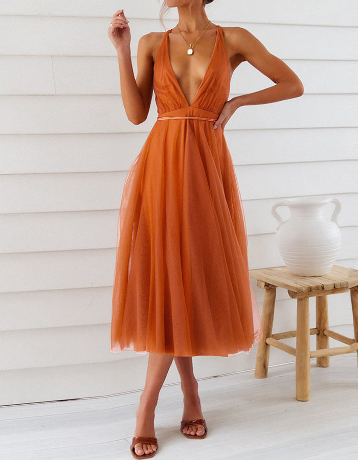 Our Deep V Neck Solid-color Mesh Bridesmaid Dresses Beach Dresses combine elegant style and comfortable fit with the natural breathability of mesh. Crafted from a blend of Polyester and Spandex. this dress features a high waist and ruffle hem for a flirty silhouette. Choose between 4 colors and three distinct styles for your perfect look.