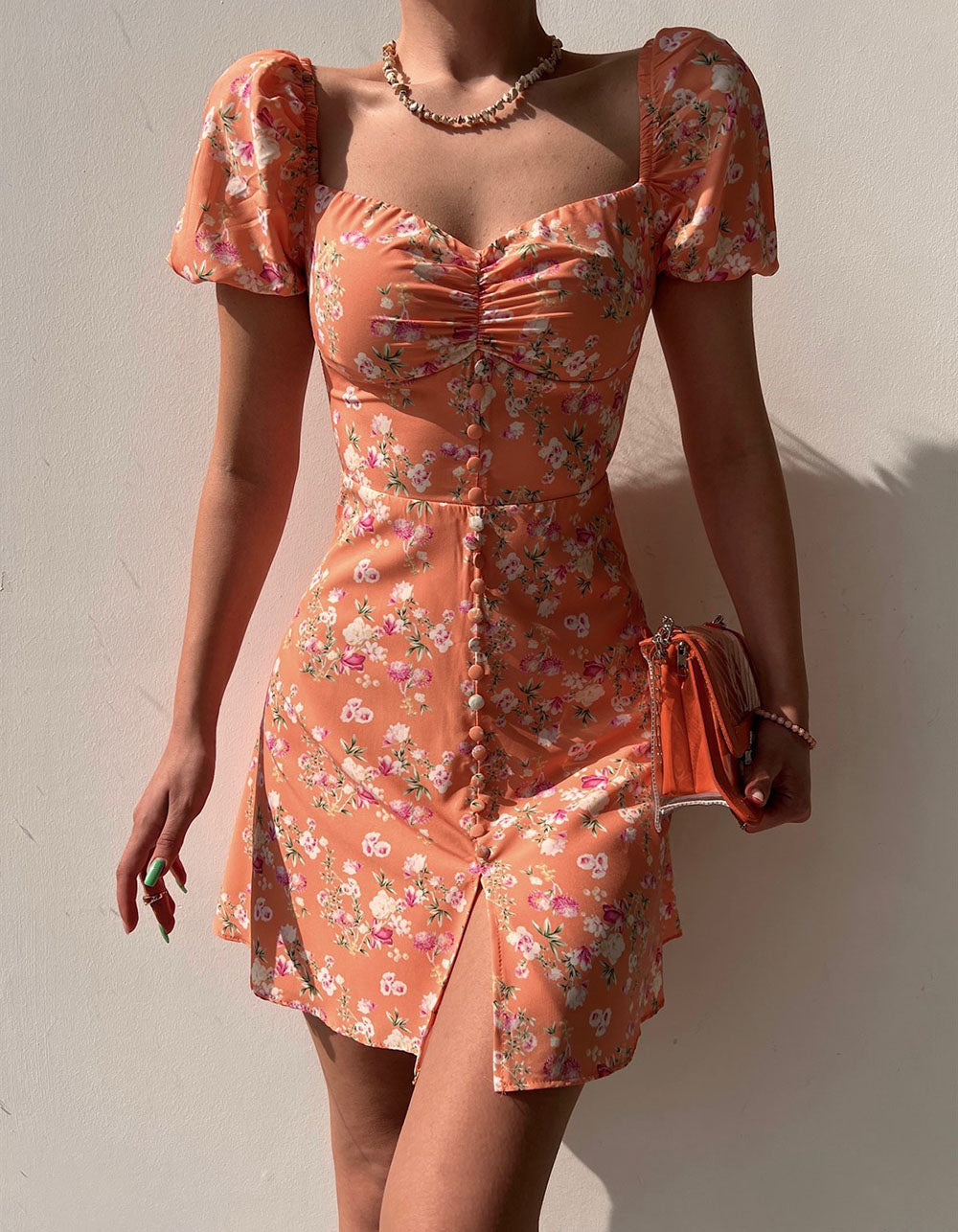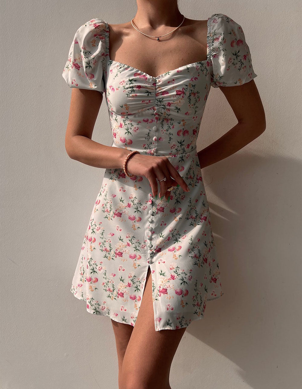 Details: Button Front.Printed.Slits.Backless