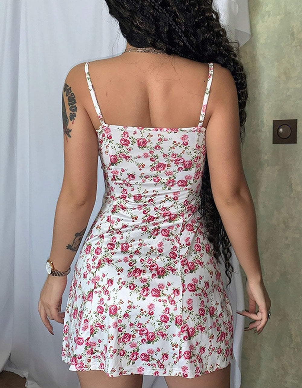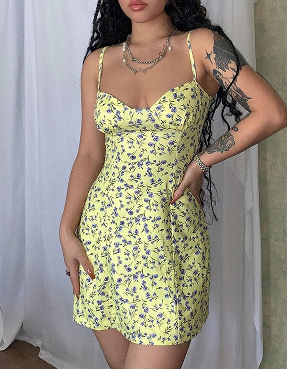 Embrace timeless style with this elegant A-line dress. featuring disty floral prints. backless design. and mid-waist fit. Made of lightweight polyester and spandex this sleeveless dress is sure to be your go-to for casual and formal occasions. Available in yellow. green and red. express yourself with a comfortable. flattering look.