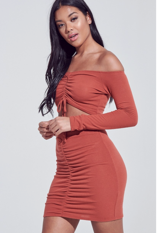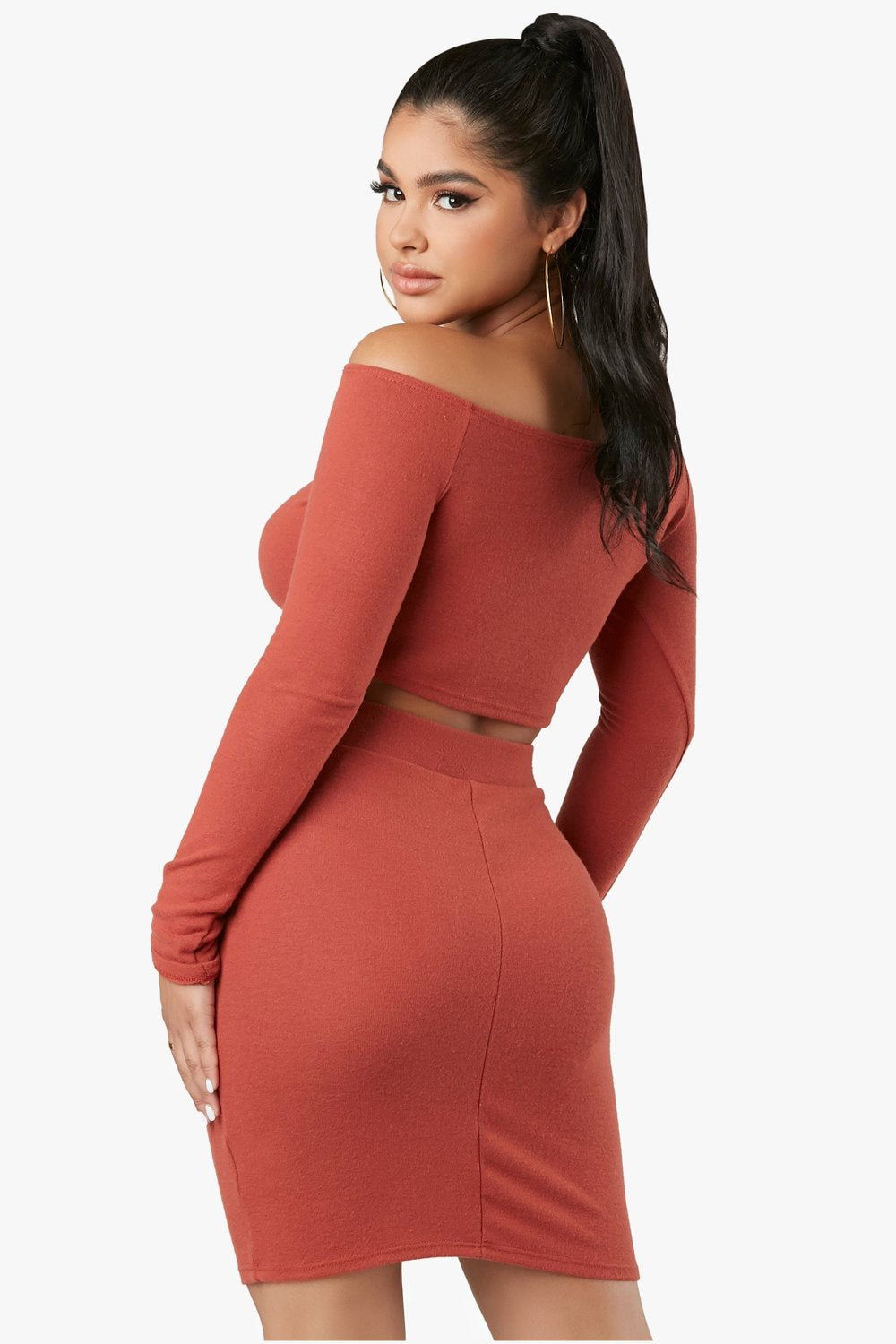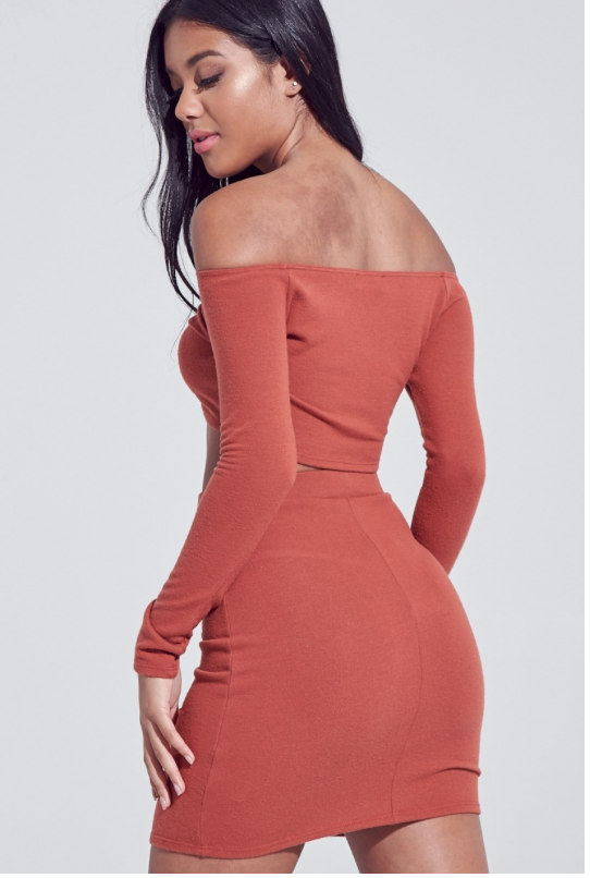 Our "Do or Dye Off Shoulder Crop Top Set" in Rust is a must-have for any fashion-forward wardrobe. The set features an off-shoulder crop top and matching shorts. both made with high-quality fabric and vibrant. rust-colored dye. Perfect for any occasion. this set is sure to turn heads and make a statement.