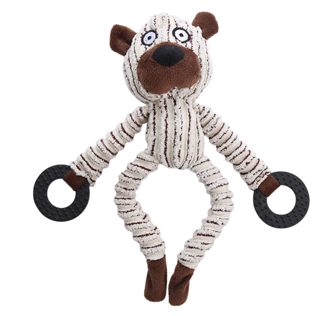 Unleash your pup's playful side with our Plush Squeaky Dog Toy. With a variety of adorable monkey. cow. and bear shapes. this toy will keep them entertained for hours while also satisfying their chewing needs. Perfect for the silly and slobbery moments in your dog's day!