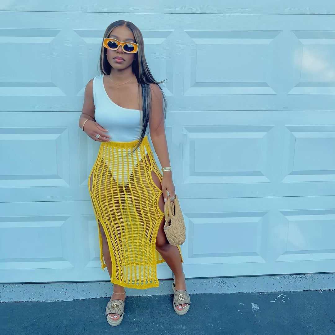 Introducing the Draya Knitted Skirt. a must-have for your summer wardrobe. Whether you're on vacation or spending time at the beach. this versatile skirt pairs perfectly with your favorite top or bikini. Made with high-quality materials. it provides both comfort and style. Perfect for any summer outing.