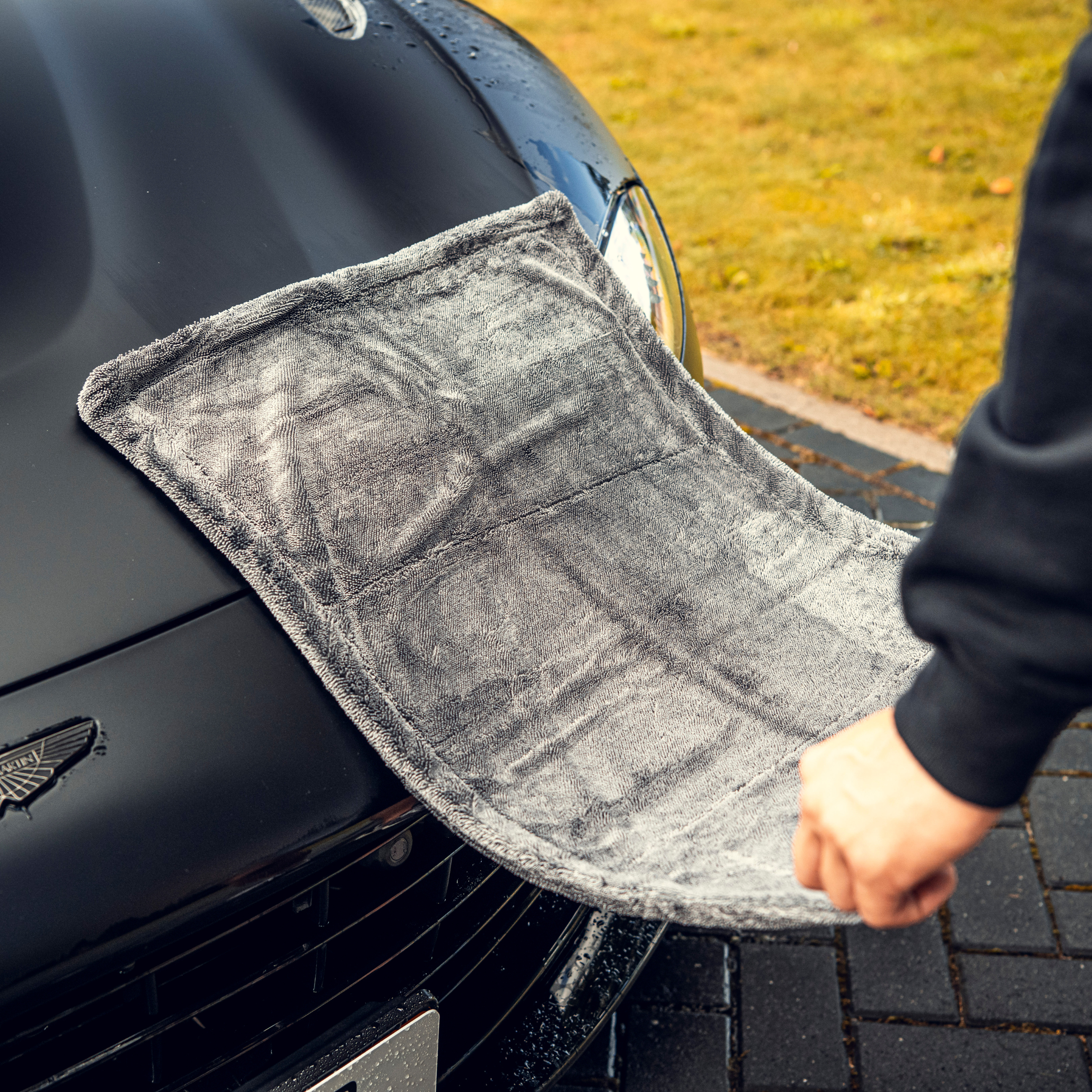 The drying cloth feels super soft to the touch and is made of the highest quality microfibers consisting of 80% polyester and 20% polyamide. This composition lends itself perfectly to a high moisture absorption which means that the absorbed moisture is retained optimally deep into the structure of the cloth. This allows you to dry your entire car streak-free with just one drying cloth.