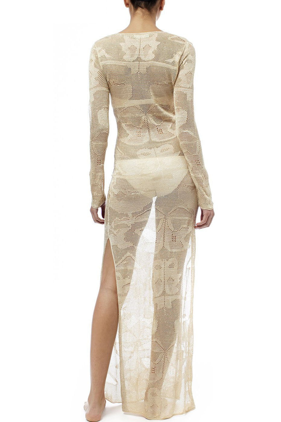 Definitely a head turner and a must have this summer in Lace Up Crochet Sheer Slit Long Beach Cover Up Dress!