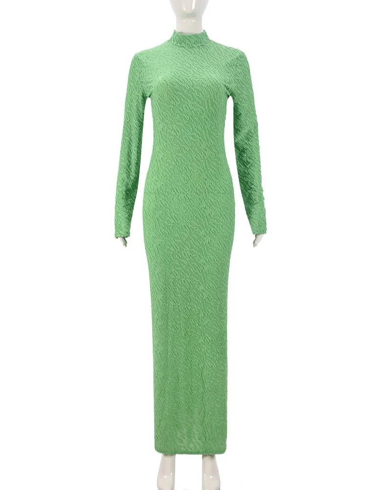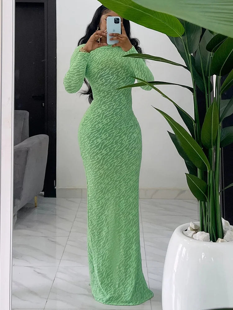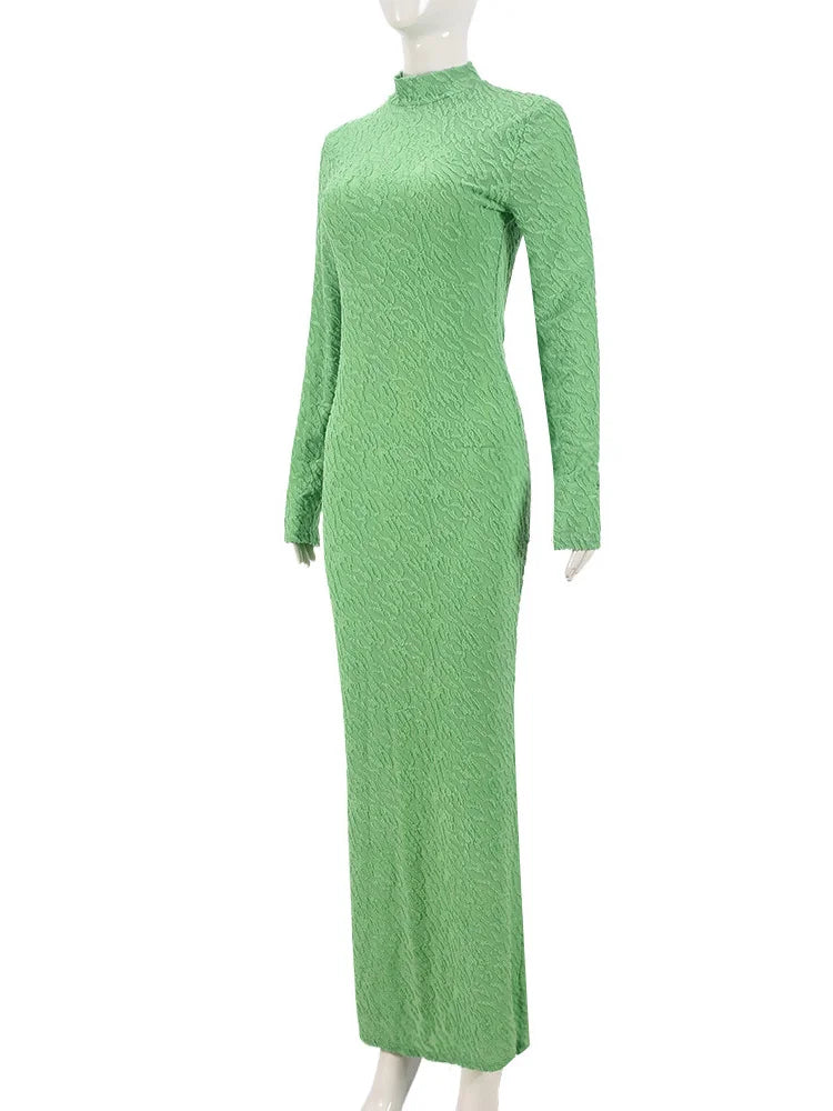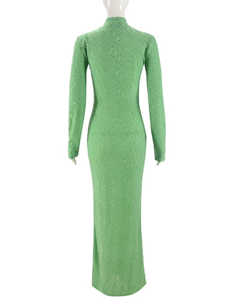 Look all kinds of glam in this Eccentric Green Maxi Long Sleeve Dress. Brought to you in a green sculpted material with a long sleeve design and bodycon fit. this maxi dress is everything you need and more! Style with your favorite accessories and highest heels for a look that's sure to earn you all the compliments.