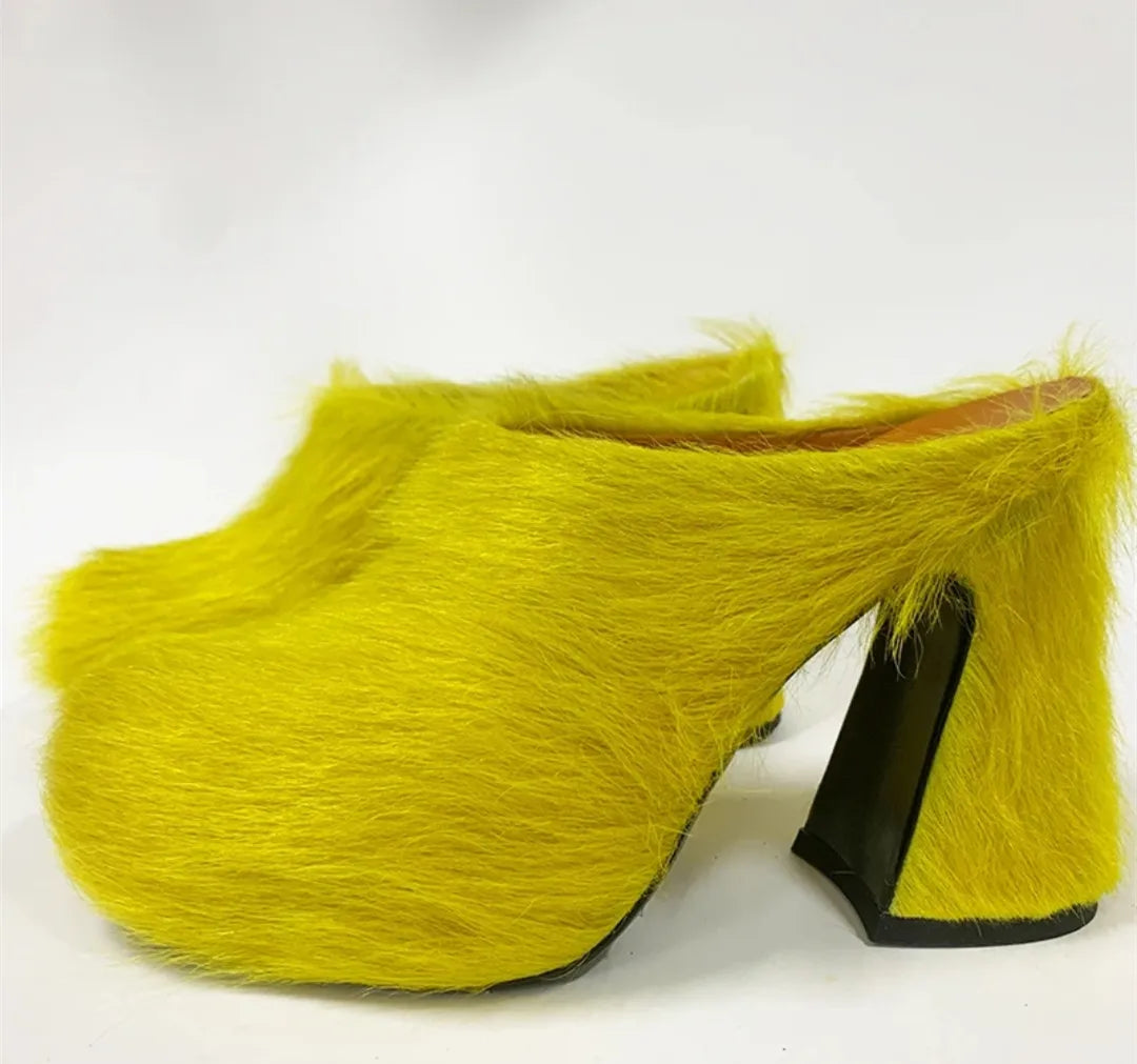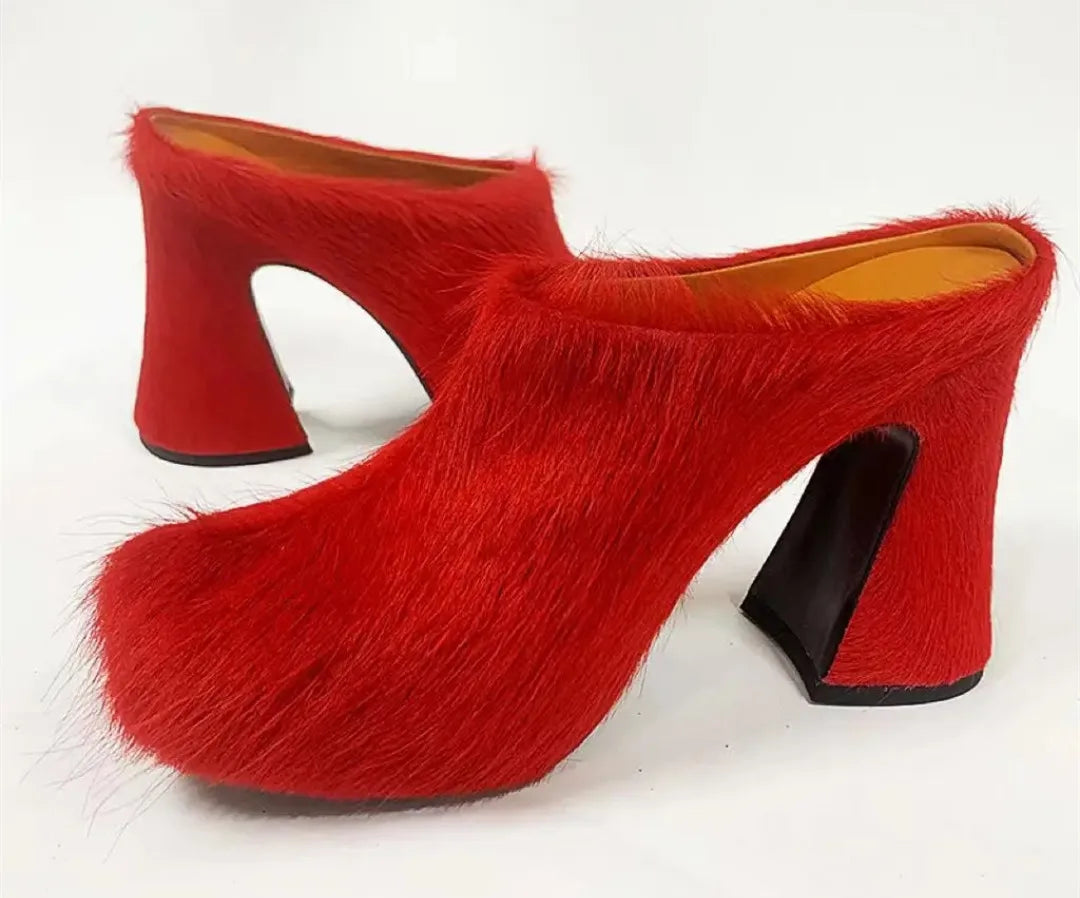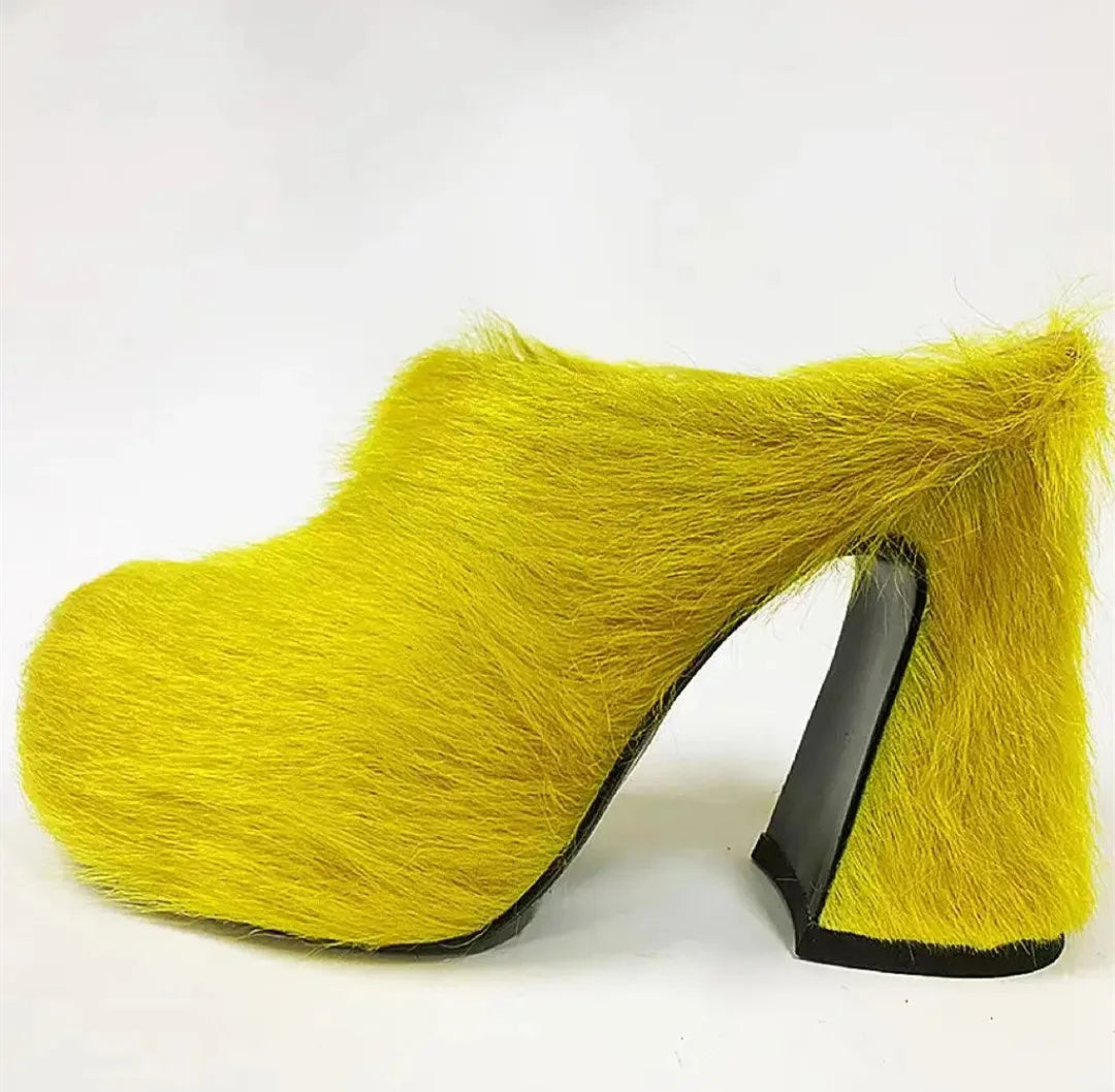 Take your look to a whole new level with these unreal Elevate Me Fur Mule Heels. Featuring an all over fur material with a round toe design and a high block heel. we are beyond in love.